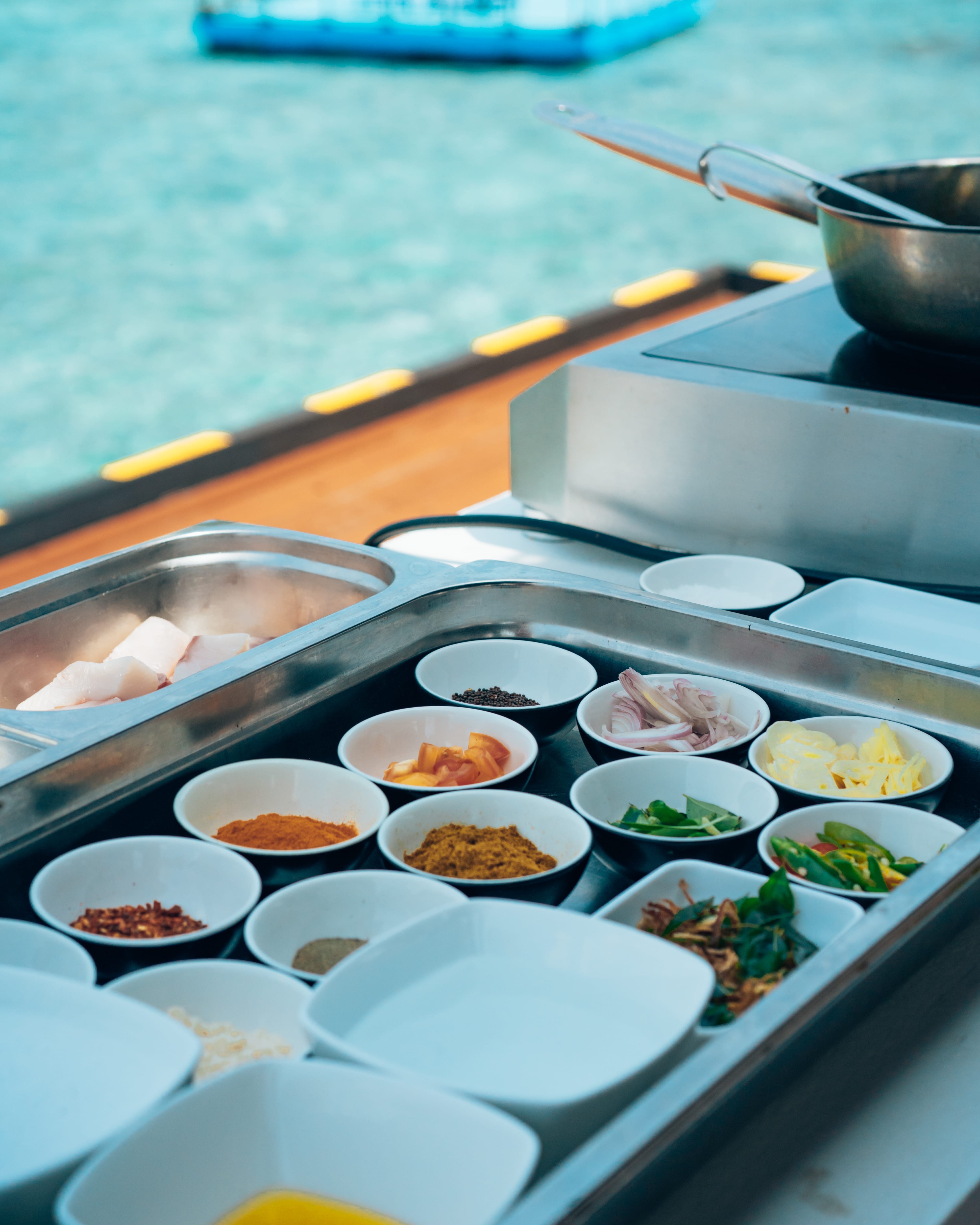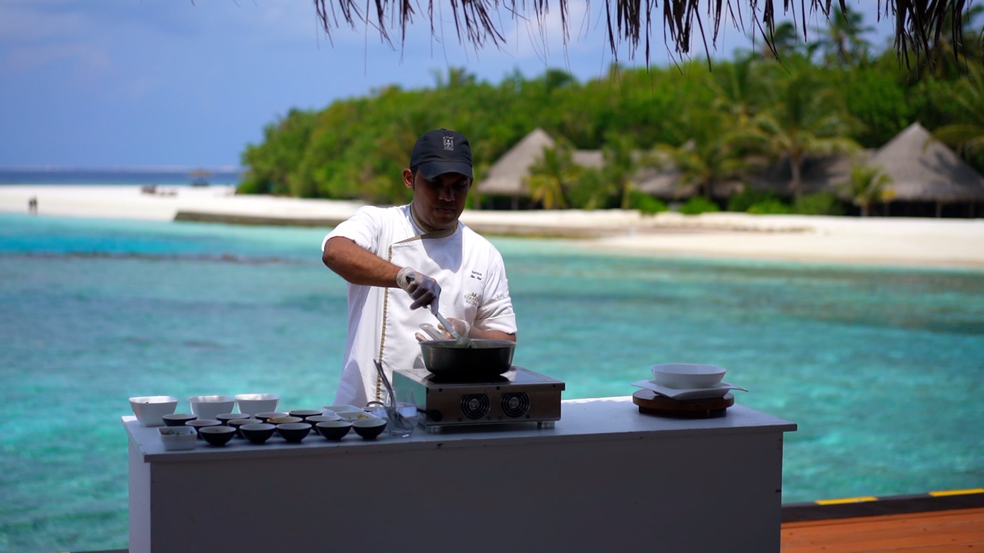 | Комментарии | Система "все включено" действует с 10:00-00:00, включает завтрак A la carte, обед сет меню и ужин сет меню с напитками в главном ресторане и барах: виски, водка, ром, джин, бренди, домашнее вино (белое, красное, розовое), пиво, свежевыжатые фруктовые соки, прохладительные напитки, некоторые коктейли.<br /> - Также предлагается комплексный вариант меню на ужин в японском ресторане в качестве альтернативы ужину в главном ресторане (необходима предварительная резервация).<br /> - Предлагается меню закусок на обед в главном баре в качестве альтернативы обеду в главном ресторане.<br /> - Полдник, печенье и закуски подаются в 17:00 (с возможностью обслуживания на вилле).<br /> - Бесплатный ужин на пляже предлагается один раз за время пребывания (при условии проживания минимум пять ночей).<br /> <br /> - Система «все включено» прекращает действовать в день отъезда в 12:00.<br /> - Предоставляемые напитки предназначены для собственного потребления и подаются по одному стакану за раз в ресторанах и барах курорта.<br /> - Некоторые виды кофе, такие как капучино, эспрессо и т.д. не входят в пакет "все включено".<br /> - Все гости, зарегистрированные в одном номере, должны быть участниками системы «все включено».<br /> - Алкогольные напитки не подаются лицам младше 18 лет. |