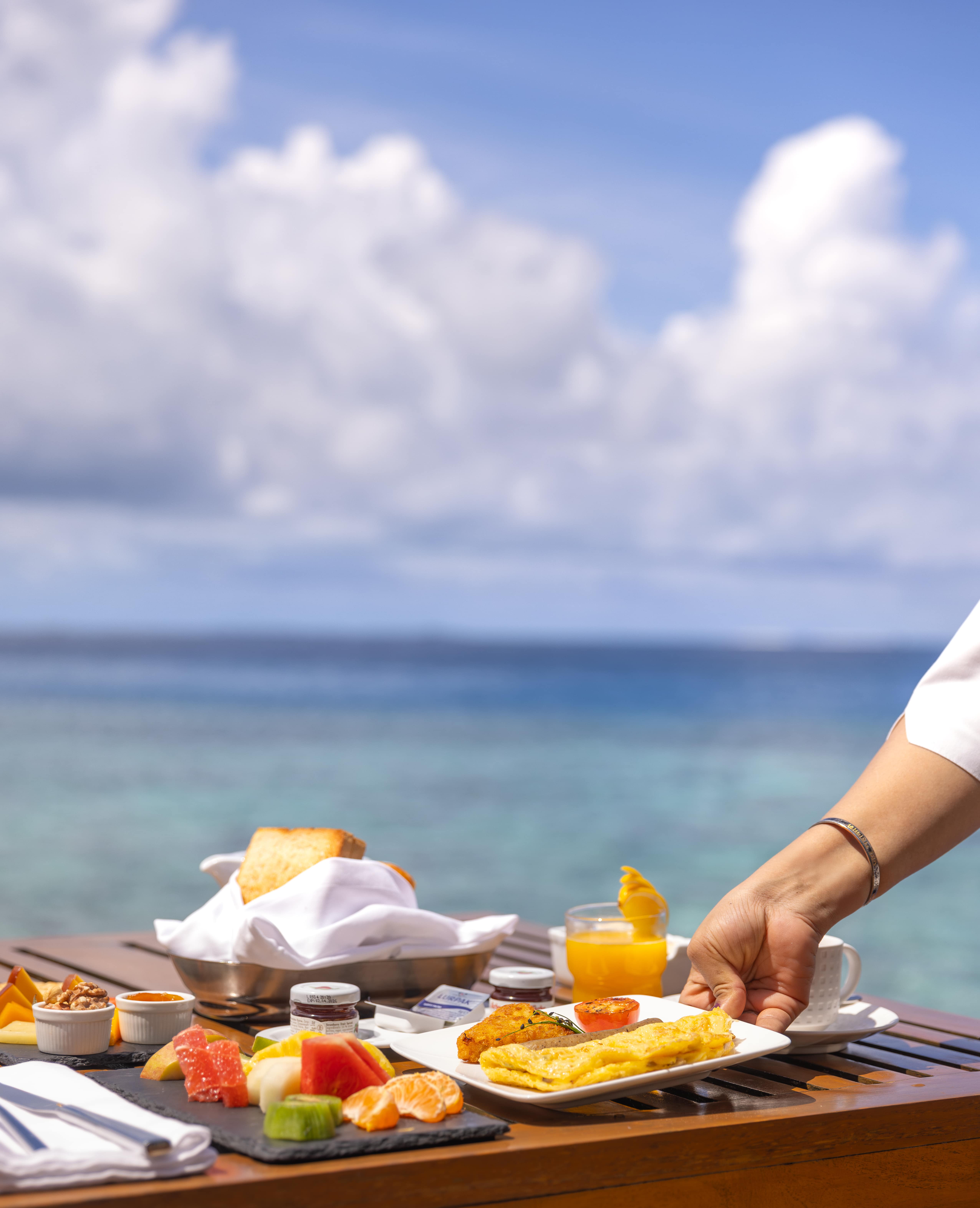 | Расписание работы основного ресторана | Farivalhu Fine Dinning Restaurant: завтрак A la carte 06:30-10:00, обед сет меню 12:30-14:30, ужин сет меню 19:30-22:30. |