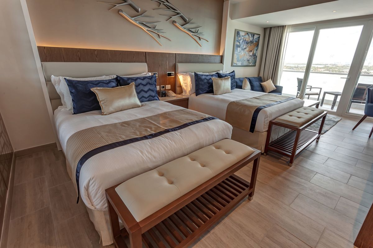 Расположение номера: в основном здании Вид из номера: на океан/на закат Покрытие пола: Плитка Дополнительные услуги: Кофеварка Одна кровать King-size и две кровати Queen.<br /> Меню подушек с гипоаллергенными наполнителями;<br /> Балкон/терраса.<br /> Тропический душ yalton;<br /> Спутниковое телевидение, в том числе специализированные каналы;<br /> Кондиционер с индивидуальным термостатом и потолочным вентилятором;<br /> Зарядные станции USB в том числе и в сейфе;<br /> Глубокая ванна-джакузи в номере;<br /> Отпариватель для одежды. |