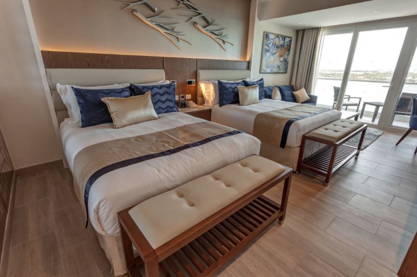 Комментарии: Одна кровать King-size и две кровати Queen.<br /> Меню подушек с гипоаллергенными наполнителями;<br /> Балкон/терраса.<br /> Тропический душ yalton;<br /> Спутниковое телевидение, в том числе специализированные каналы;<br /> Кондиционер с индивидуальным термостатом и потолочным вентилятором;<br /> Зарядные станции USB в том числе и в сейфе;<br /> Глубокая ванна-джакузи в номере;<br /> Отпариватель для одежды.
