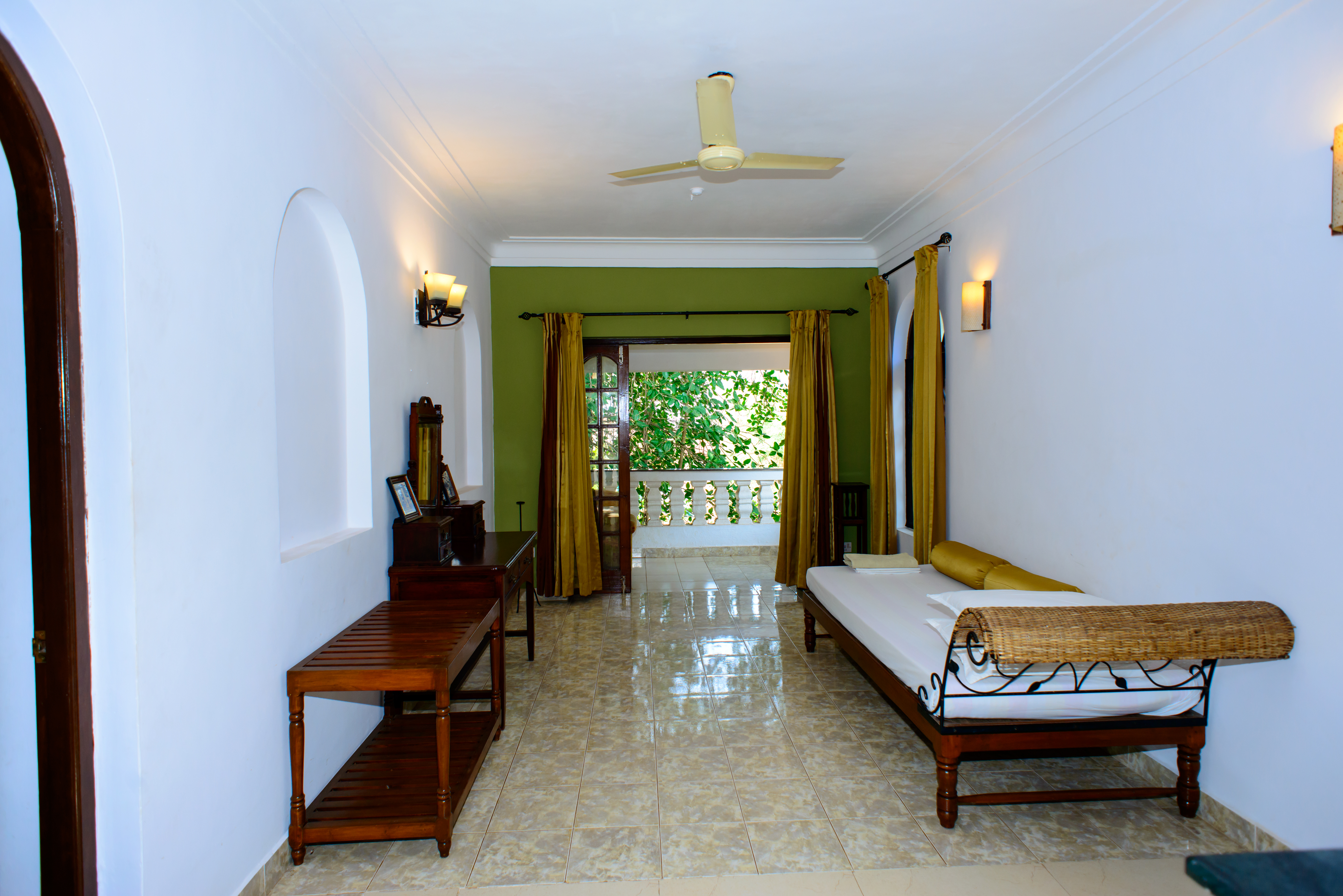 Вид из номера: частичный вид на море Покрытие пола: Плитка Suite Air Condition With Extra Bed - кондиционер есть, доп. спальное место есть.<br /> Suite Air Condition Without Extra Bed - кондиционер есть, дор. спального места нет.<br /> <br /> 1 двуспальная и 1 односпальная кровати. Индивидуальный кондиционер только в спальне, в гостиной - потолочный вентилятор. Сейф примерно 100 RS/ день (на ресепшн). <br /> Номера расположены в бунгало и в основном корпусе. Реновированы в 2009 году. |
