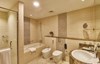 Вид из номера: на город Покрытие пола: Ковролин Уборка в номере: ежедневно Смена белья: ежедневно Гостиная с телевизором с плоским экраном 49-дюймов, спутниковые каналы, кухня с кухонными принадлежностями и посудой, кровать размера "king-size" в главной спальне и две односпальные кровати во второй спальне, 2 мраморные ванные комнаты.<br /> Халат и тапочки по запросу. |