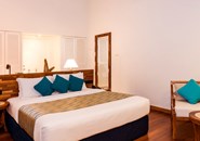 Расположение номера: расположены на пляже в отдельно стоящих одноэтажных коттеджах, сгруппированы по 2 номера под одной крышей Общая площадь - 47 кв.м, площадь спальни - 25 кв.м, площадь ванной комнаты - 10 кв.м, площадь террасы - 11 кв.м.<br /> Ванная комната частично открытого типа: душ, душ под открытым небом.<br /> Потолочный вентилятор.<br /> Банные принадлежности.<br /> Два шезлонга на террасе.<br /> Спутниковое телевидение.<br /> Максимальное размещение: 3 взрослых или 2 взрослых + 2 детей.<br /> При размещении 2 взрослых + 2 детей предоставляется только одно дополнительное спальное место и второй ребенок спит на кровати с родителями. |