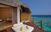 Расположение номера: расположенные над водой сдвоенные виллы, по 2 номера в каждой вилле Дополнительные услуги: кофемашина Общая площадь виллы 84 кв.м, площадь спальни 32,5 кв.м, ванной комнаты 9,73 кв.м, террасы 41,6 кв.м.<br /> Терраса со стеклянной панелью: джакузи, кушетки, лестница в воду. |