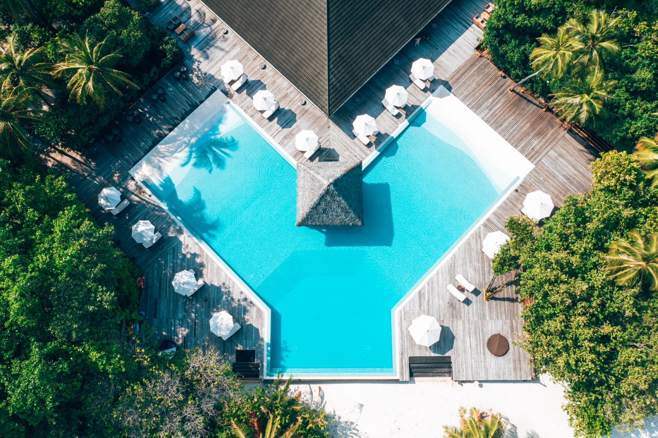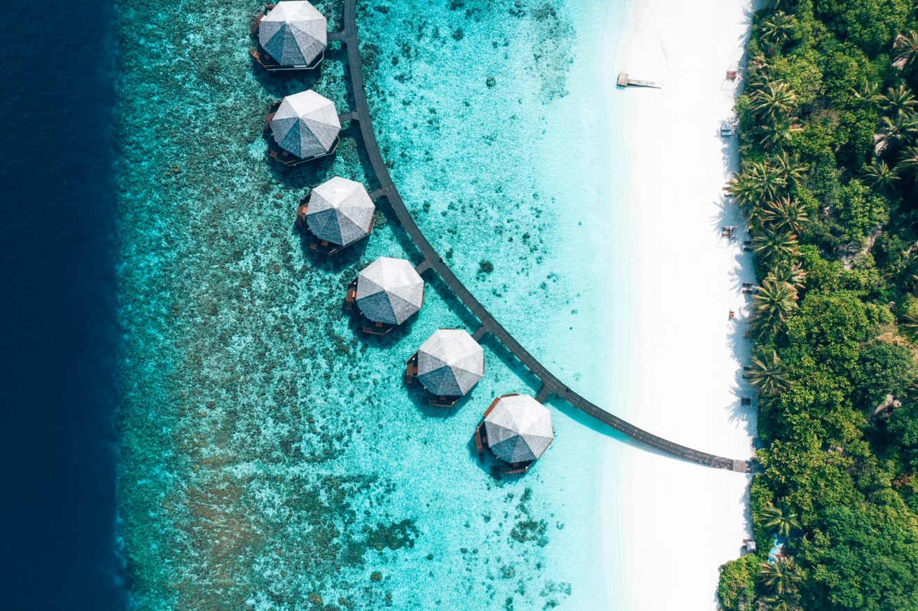 Расположение номера: расположенные над водой сдвоенные виллы, по 2 номера в каждой вилле
