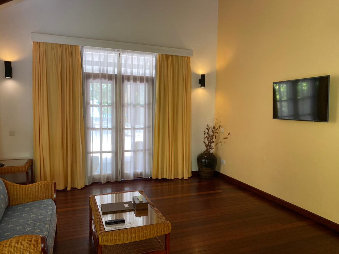 Расположение номера: расположены на пляже, отдельно стоящие виллы Общая площадь - 94 кв.м, площадь спален - 50 кв.м, площадь ванных комнат - 21 кв.м, площадь террасы - 22 кв.м.<br /> 2 ванные комнаты.<br /> Потолочный вентилятор.<br /> Банные принадлежности.<br /> Подготовка номера ко сну.<br /> Душ на открытом воздухе.<br /> Два шезлонга на террасе.<br /> Спутниковое телевидение.<br /> Максимальное размещение: 6 взрослых или 4 взрослых + 2 детей. |