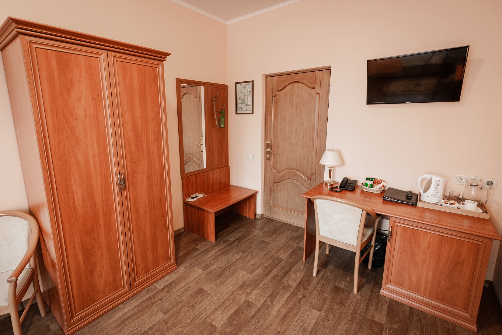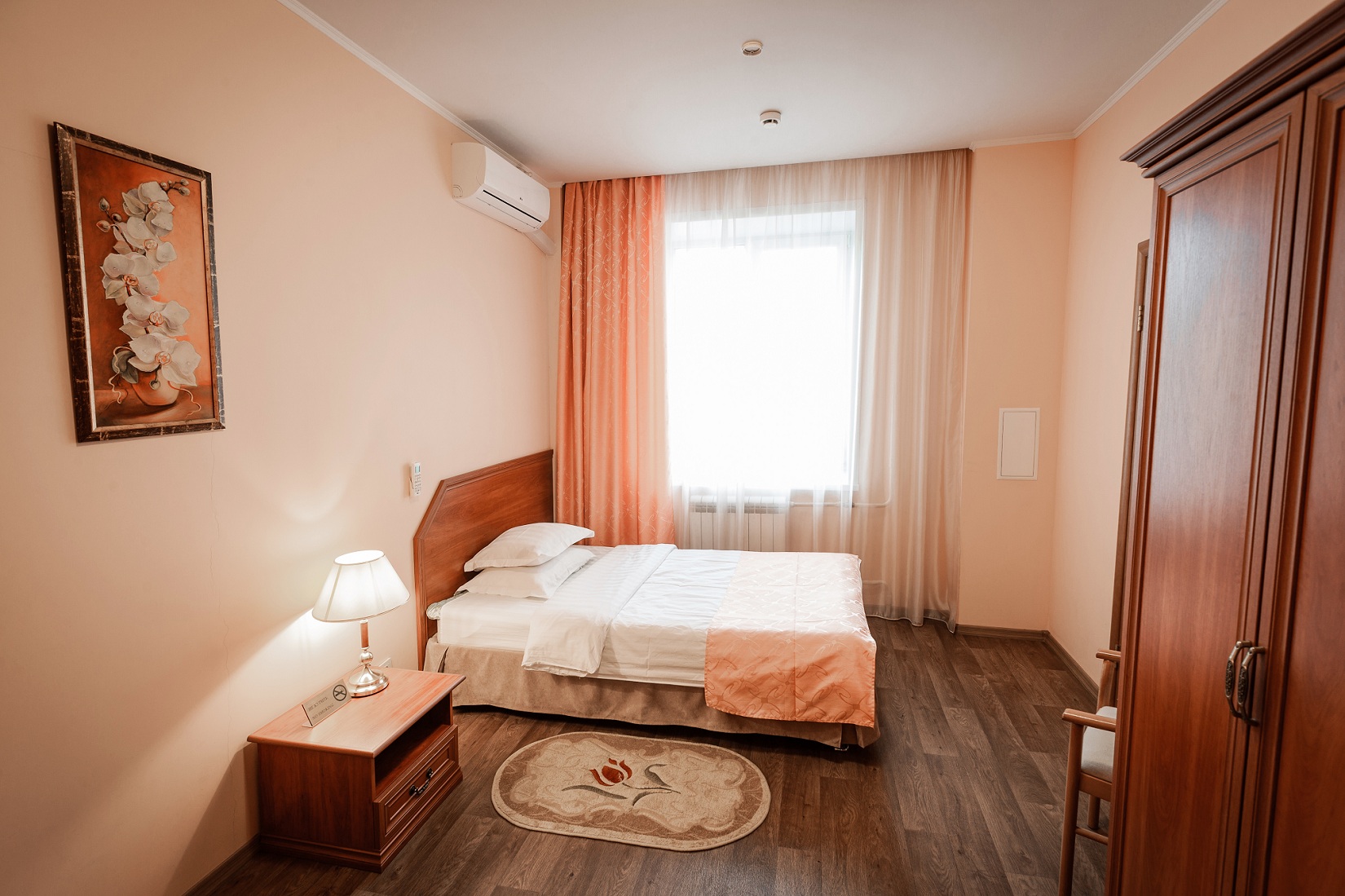 Расположение номера: 2,3,4,5 этажи Вид из номера: на территорию / на город Покрытие пола: Ламинат Уборка в номере: 1 раз в день Смена белья: 1 раз в 3 дня; полотенца ежедневно Спальня и ванная комната (ванна или душ).<br /> <br /> Год реновации: 2021. |