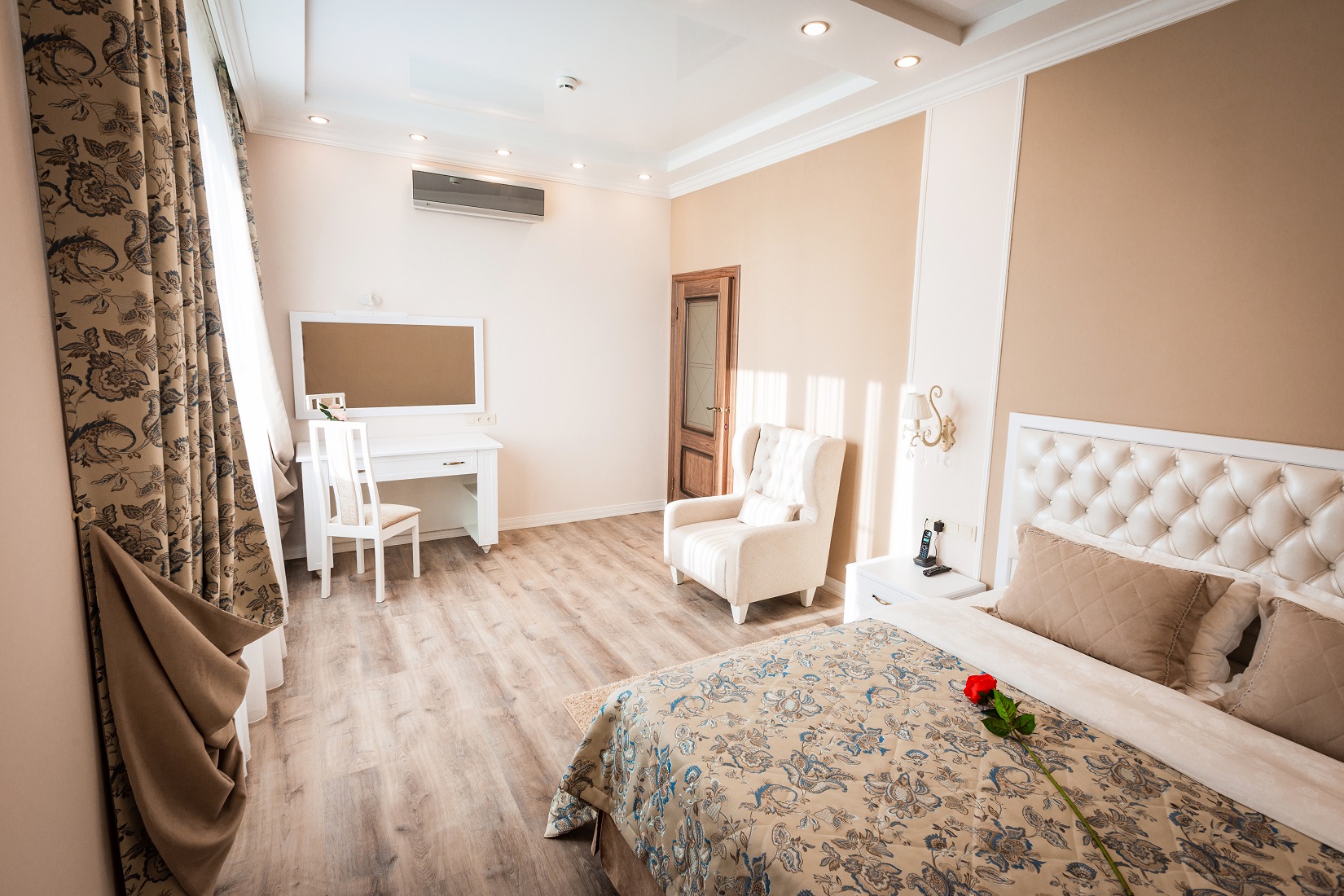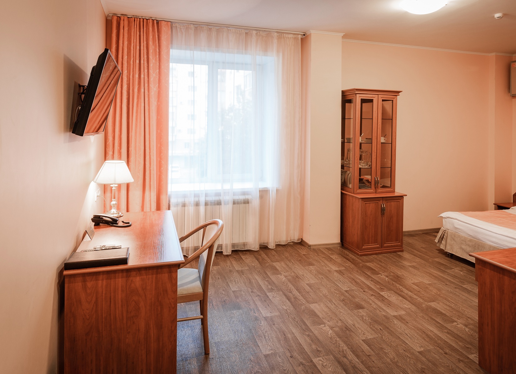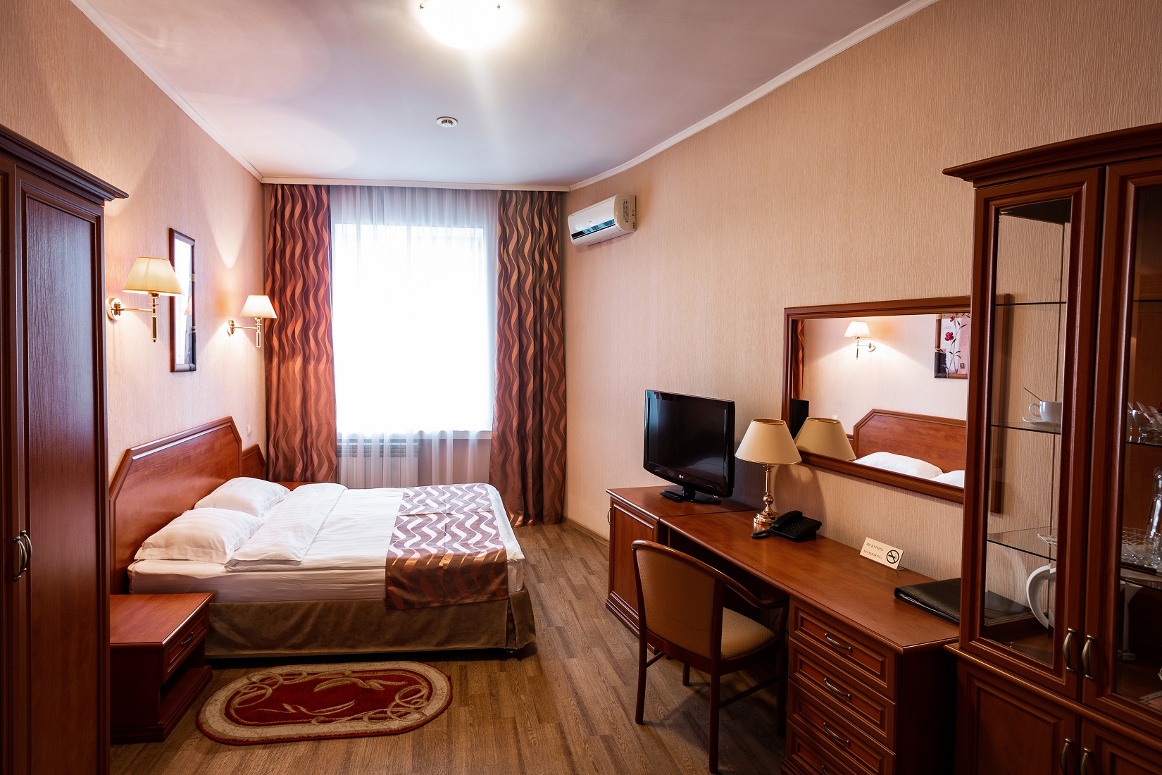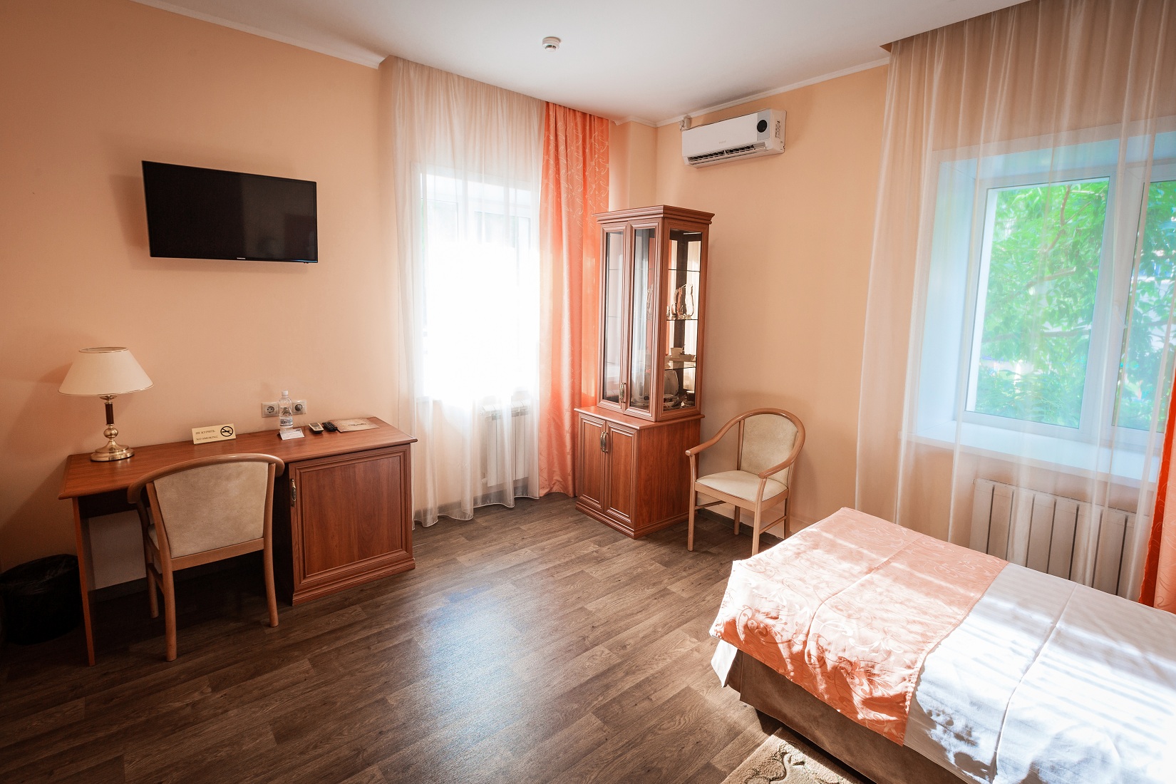 Расположение номера: 4,5 этажи Вид из номера: на территорию / на город Покрытие пола: Ламинат Уборка в номере: 1 раз в день Смена белья: 1 раз в 3 дня; полотенца ежедневно Дополнительное спальное место: диван раскладной.<br /> <br /> Год реновации: 2020. |