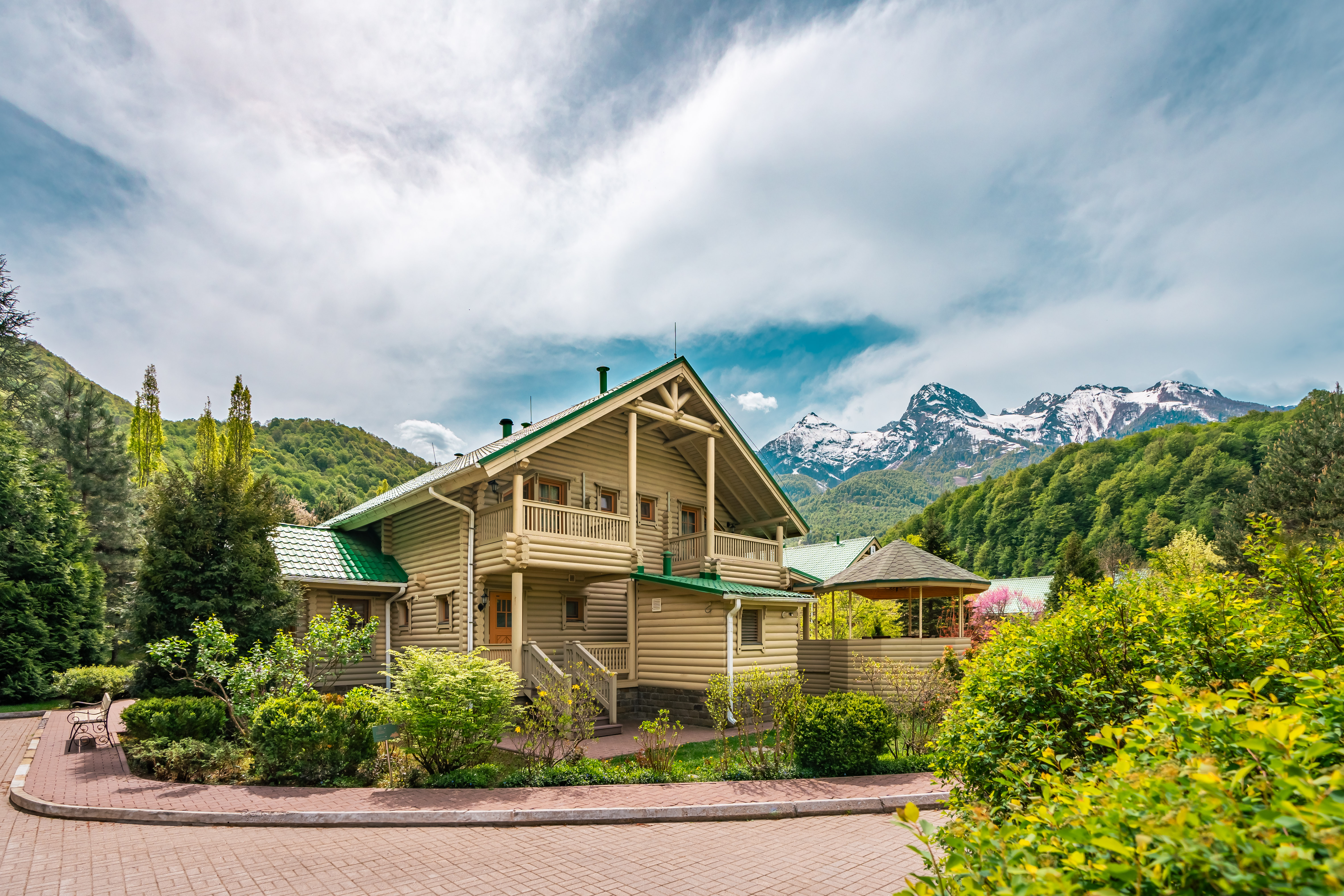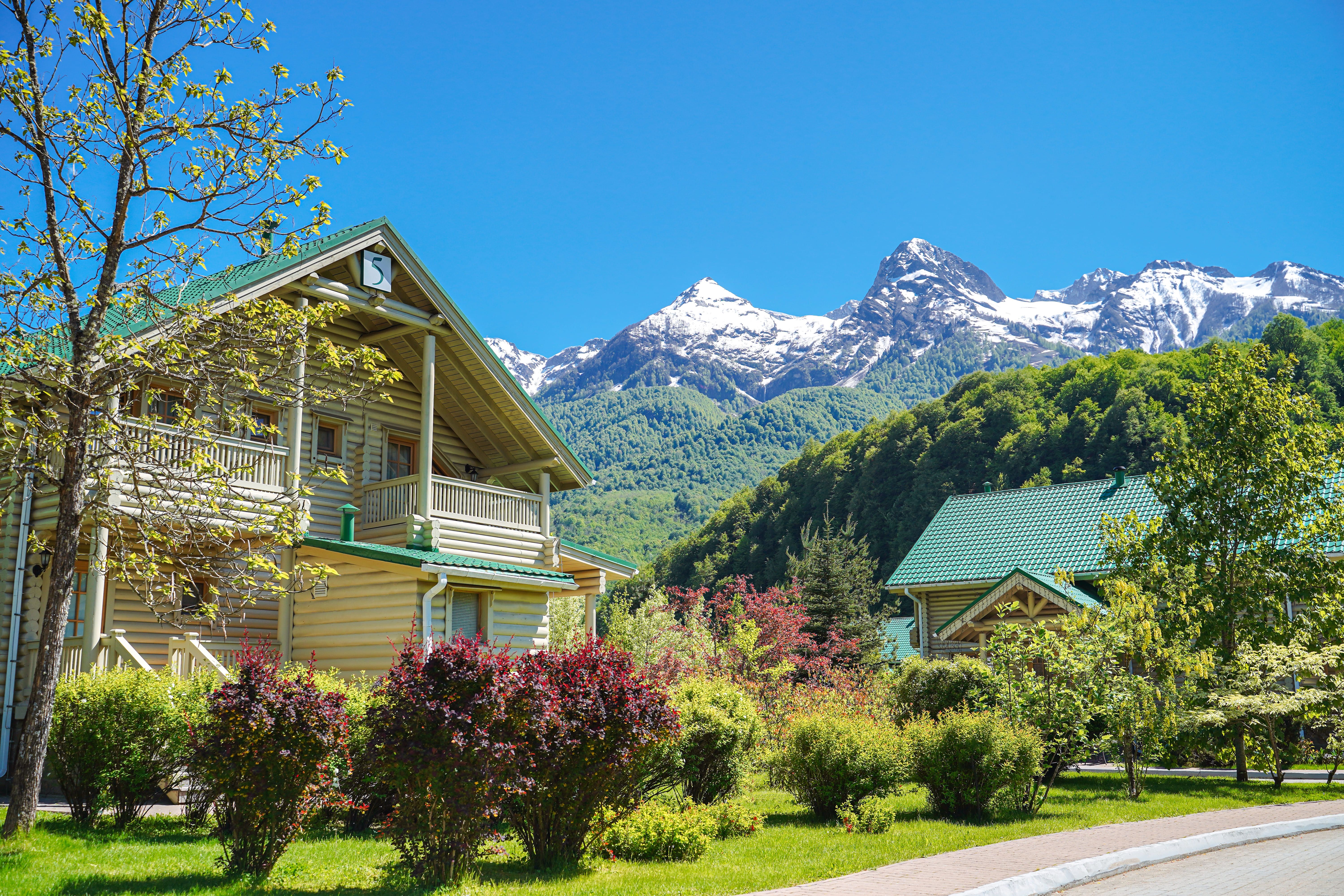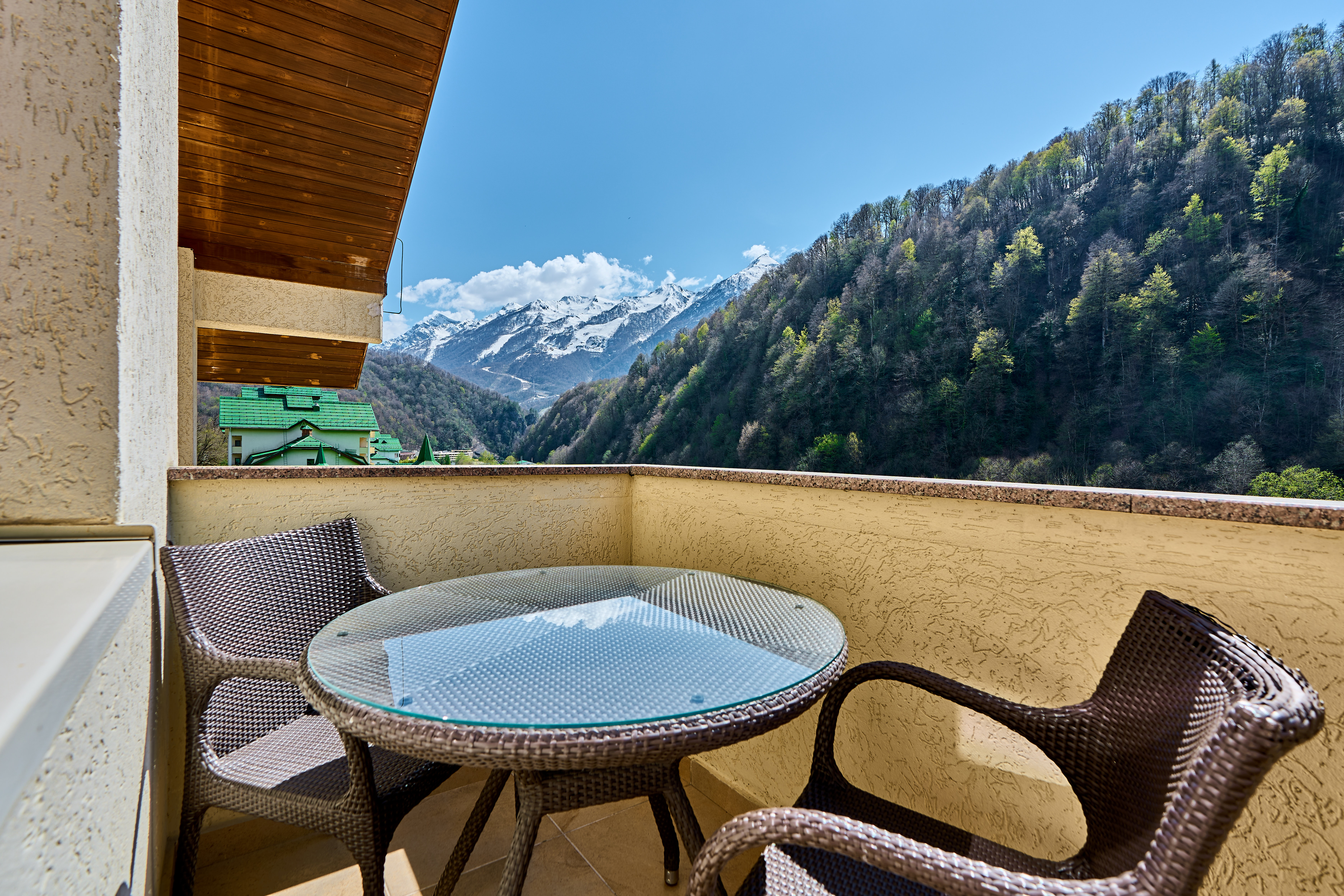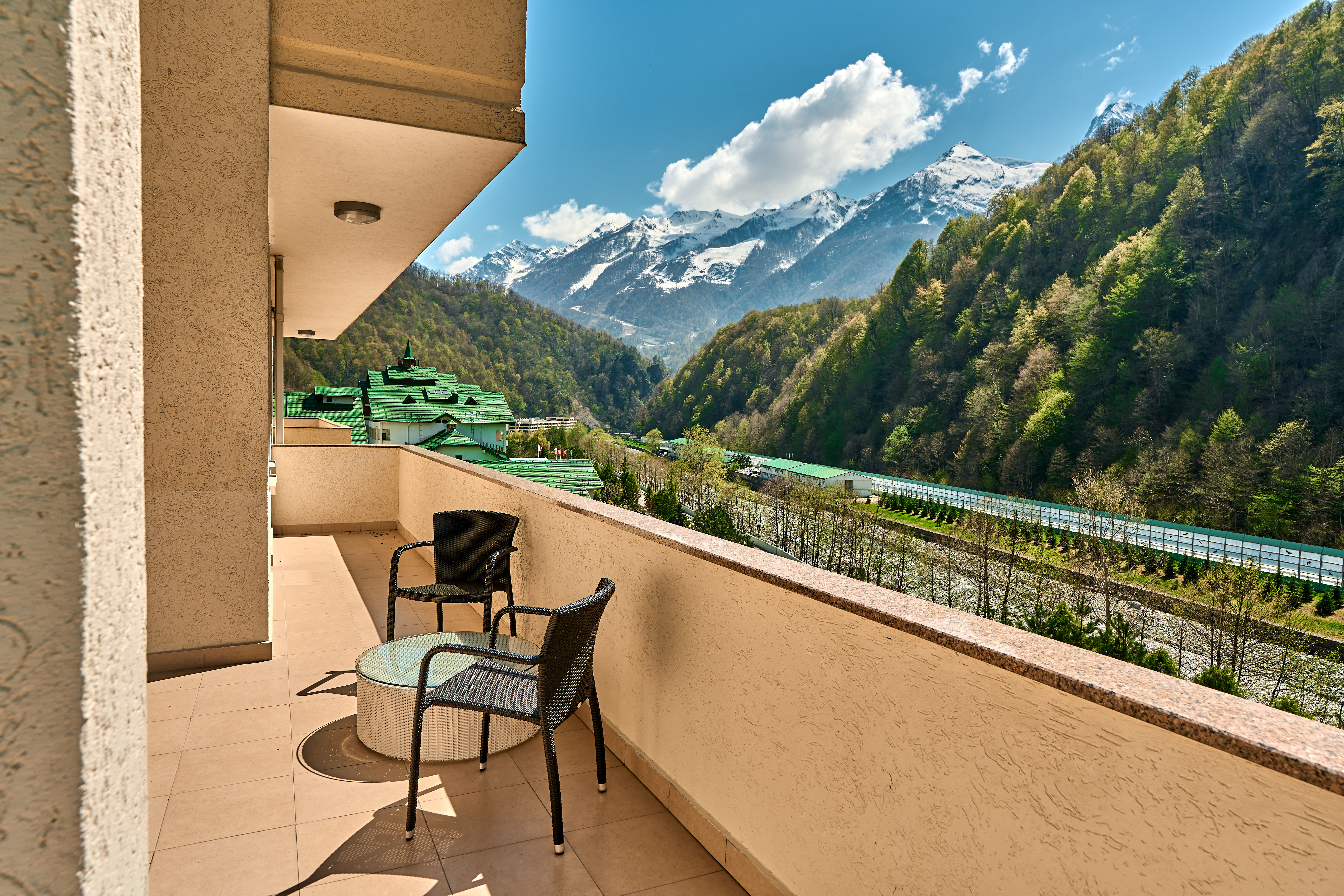 413 уютных номеров, деревянные виллы, бары и рестораны с кухней из сезонных продуктов. В составе гостиничного комплекса также имеются 9 конференц-залов и детские клубы, 2 крытых и 2 открытых бассейна, теннисные корты, спортивные площадки, залы и бойцовский клуб. Для гостей доступны канатные дороги и горнолыжные трассы мирового уровня, экскурсионные и развлекательные программы.