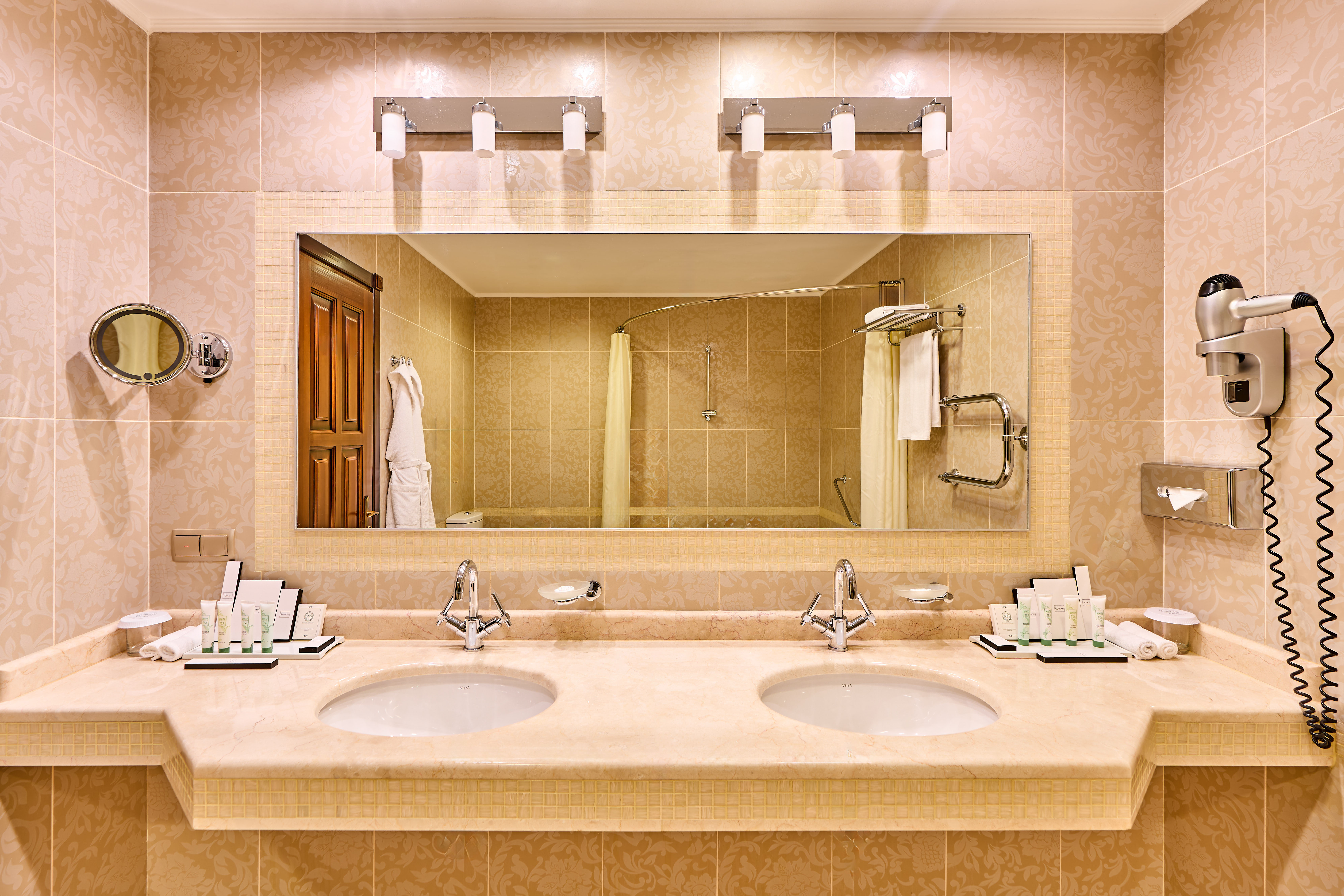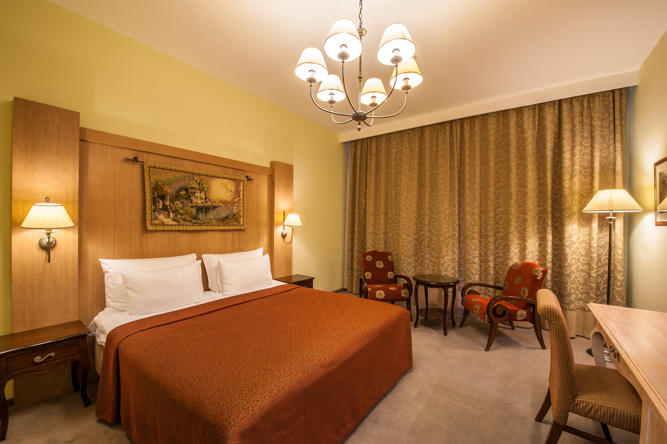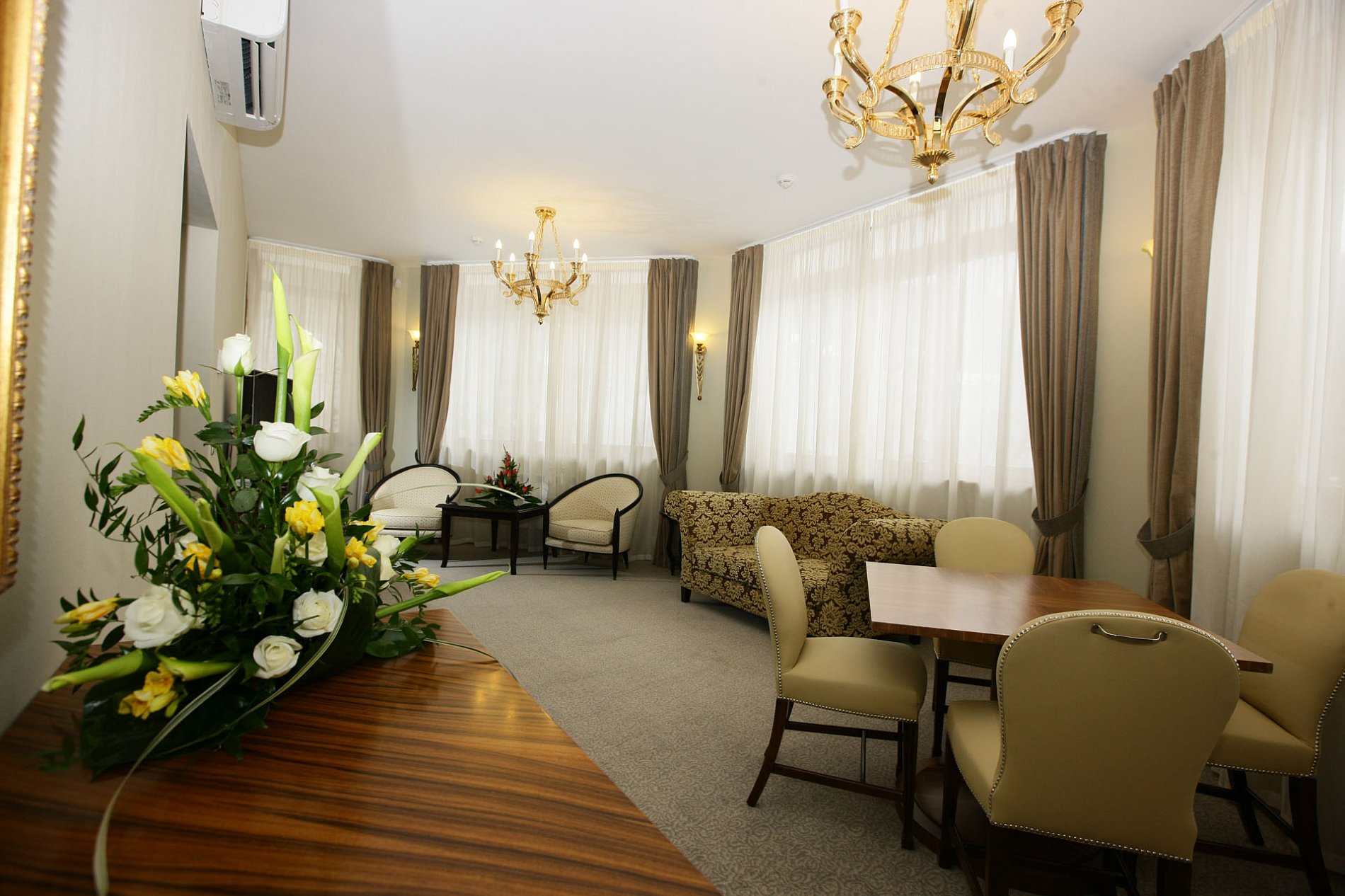 | Бар | Лобби-бары: широкий выбор напитков, коктейлей и сигар. Бар "Грильяж": богатый выбор вин из винотеки отеля, а также десерты собственного приготовления. Кафе "Вена" (корпус «В»): авторские десерты, конфеты ручной работы. Обширная карта вин. Время работы: круглосуточно  |