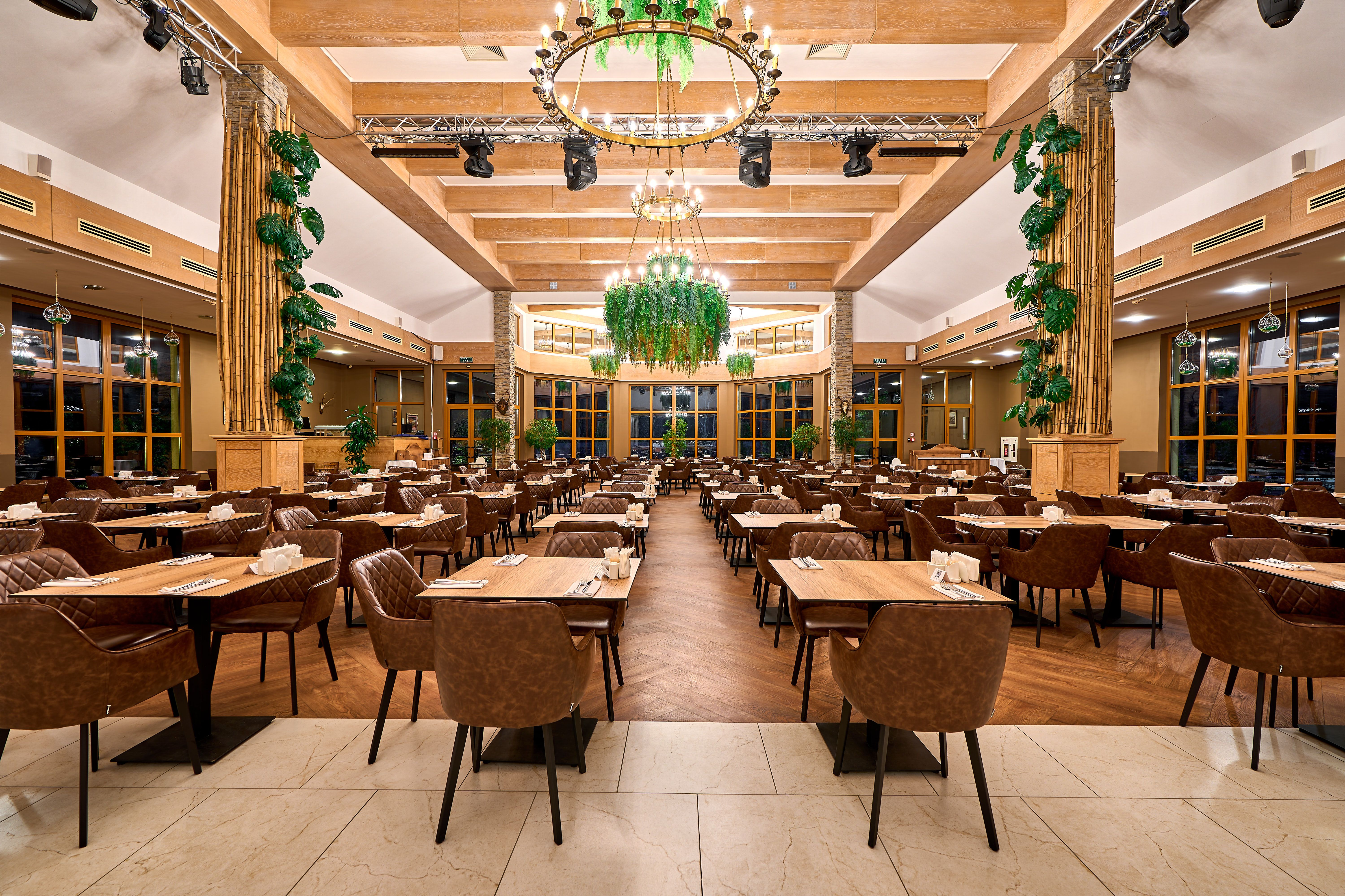 | Рестораны a la carte/шведский стол | Континенталь ресторан (Корпус А) - Новая русская кухня. Открытая терраса в теплое время года. Живой звук. Обширная карта вин.<br /> Завтрак 07:30 – 10:30<br /> Меню a-la carte 13:00 – 23:30<br /> Технический перерыв 10:30 – 13:00<br /> <br /> Охотничий зал ресторан (Корпус В) - Традиционная русская кухня. В ресторане проводятся тематические ужины и концерты. Живой звук.<br /> Завтрак 07:30 – 10:30<br /> Меню a-la carte 13:00 – 23:30<br /> Технический перерыв 10:30 – 13:00<br /> <br /> Сезон ресторан (Корпус В) - Авторская кухня. Сезонные предложения. Элегантный интерьер.<br /> Время работы: 12:00 – 23:30<br /> <br /> Павильон Steak House (Корпус С) - Мясные блюда, домашняя атмосфера. Обширная карта вин. Кулинарные мастер-классы.<br /> Завтрак 07:30 – 10:30<br /> Меню a-la carte 13:00 – 23:30<br /> Технический перерыв 10:30 – 13:00 |