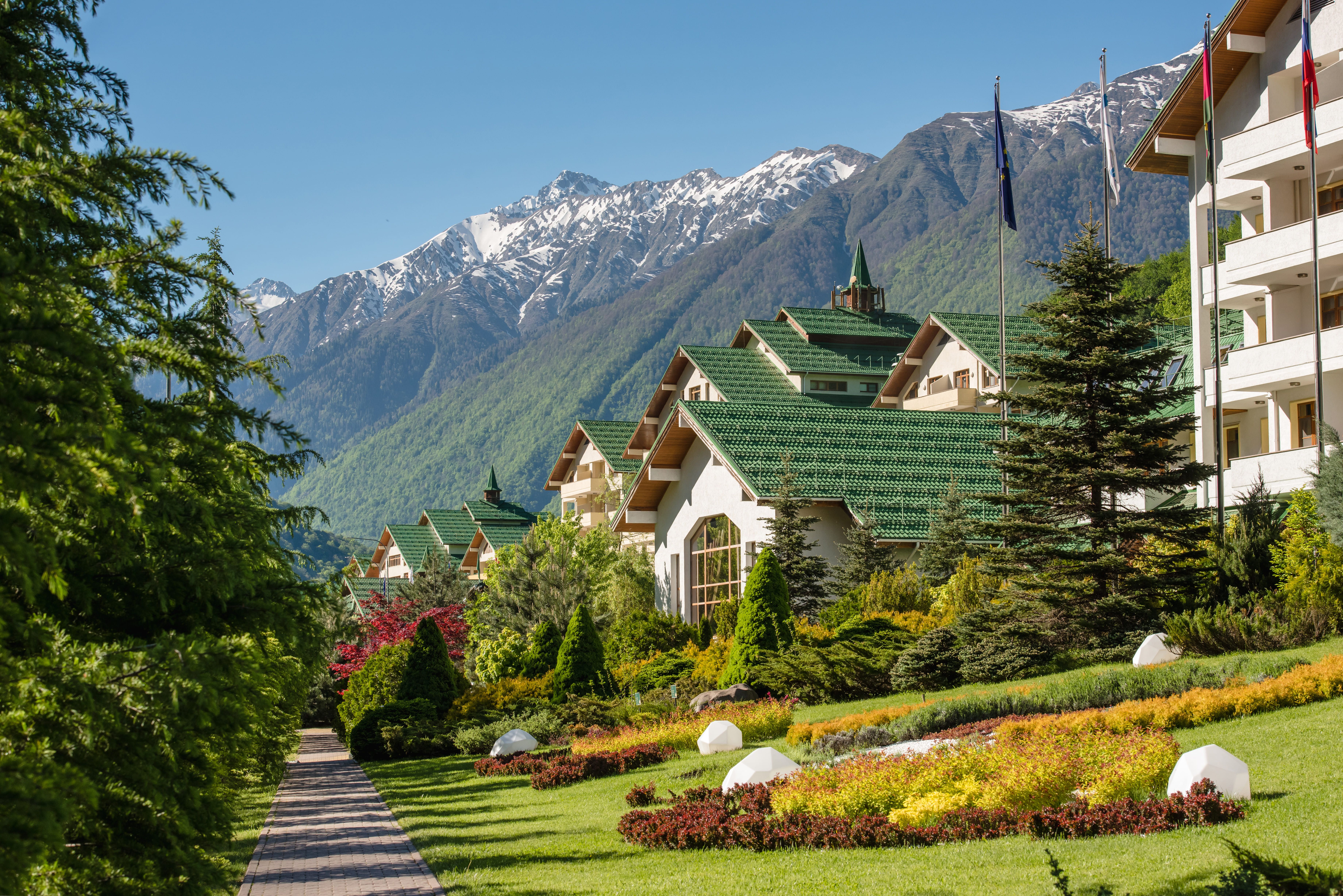 «Гранд Отель Поляна» – флагманский гостиничный комплекс курорта "Газпром" 5* . Отель расположен среди пиков Кавказских гор, рядом с заповедными местами Сочинского национального парка.
