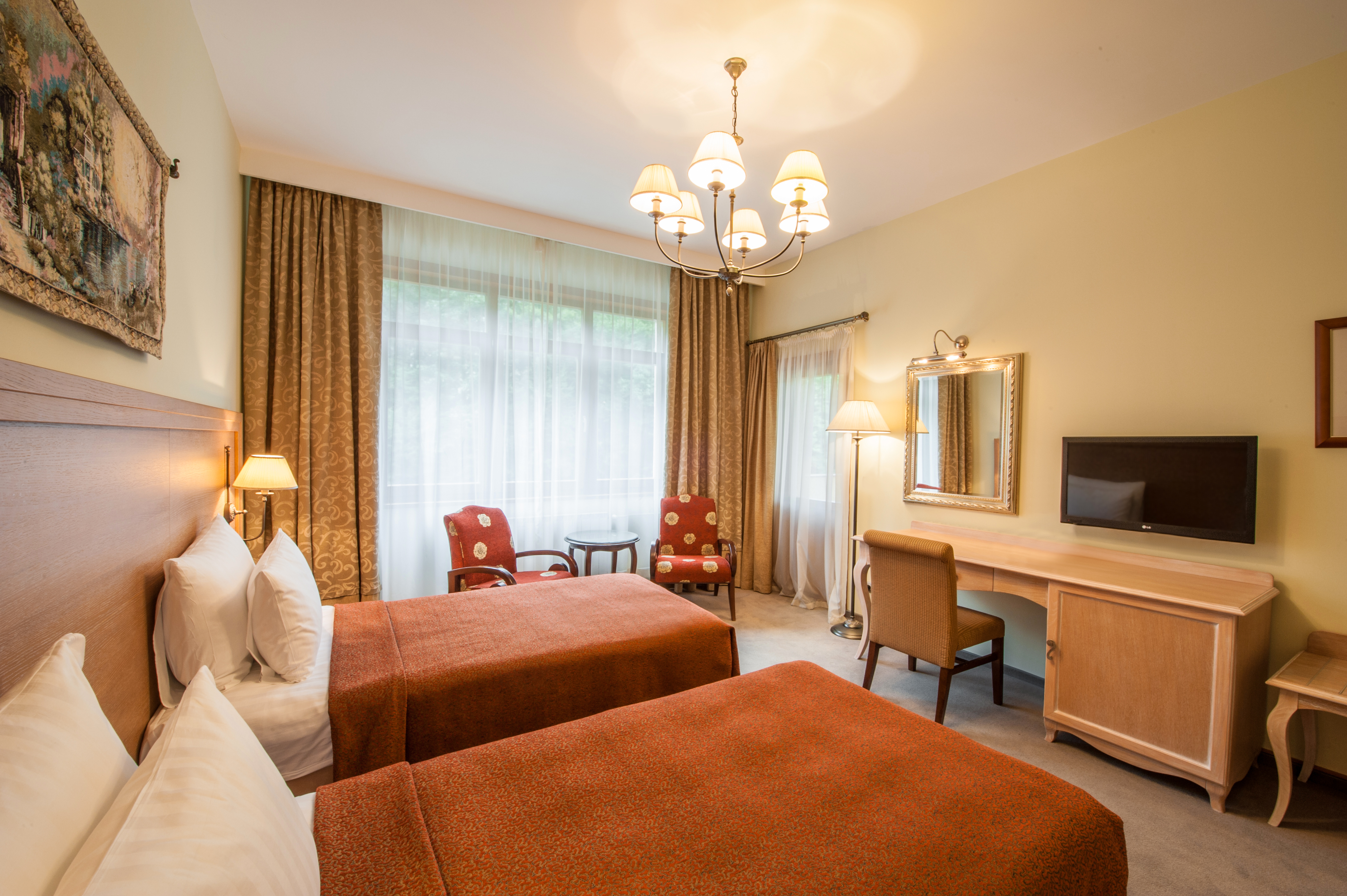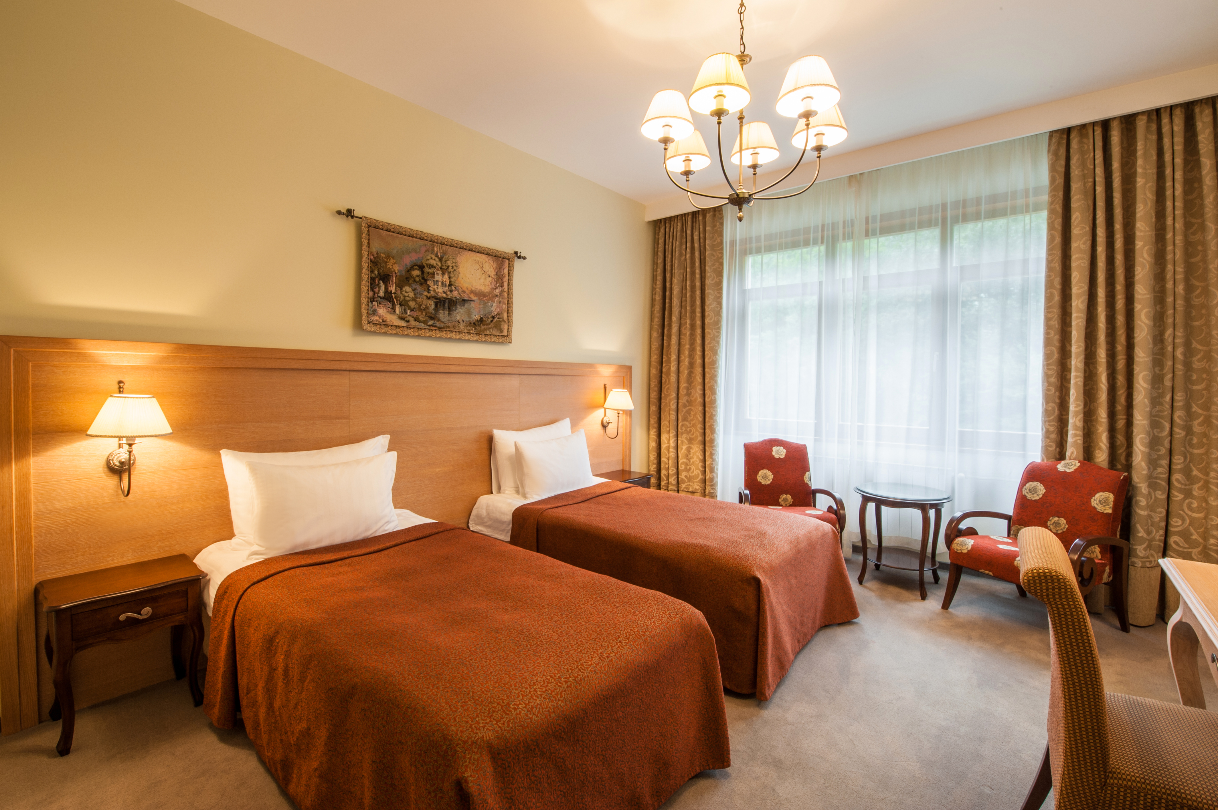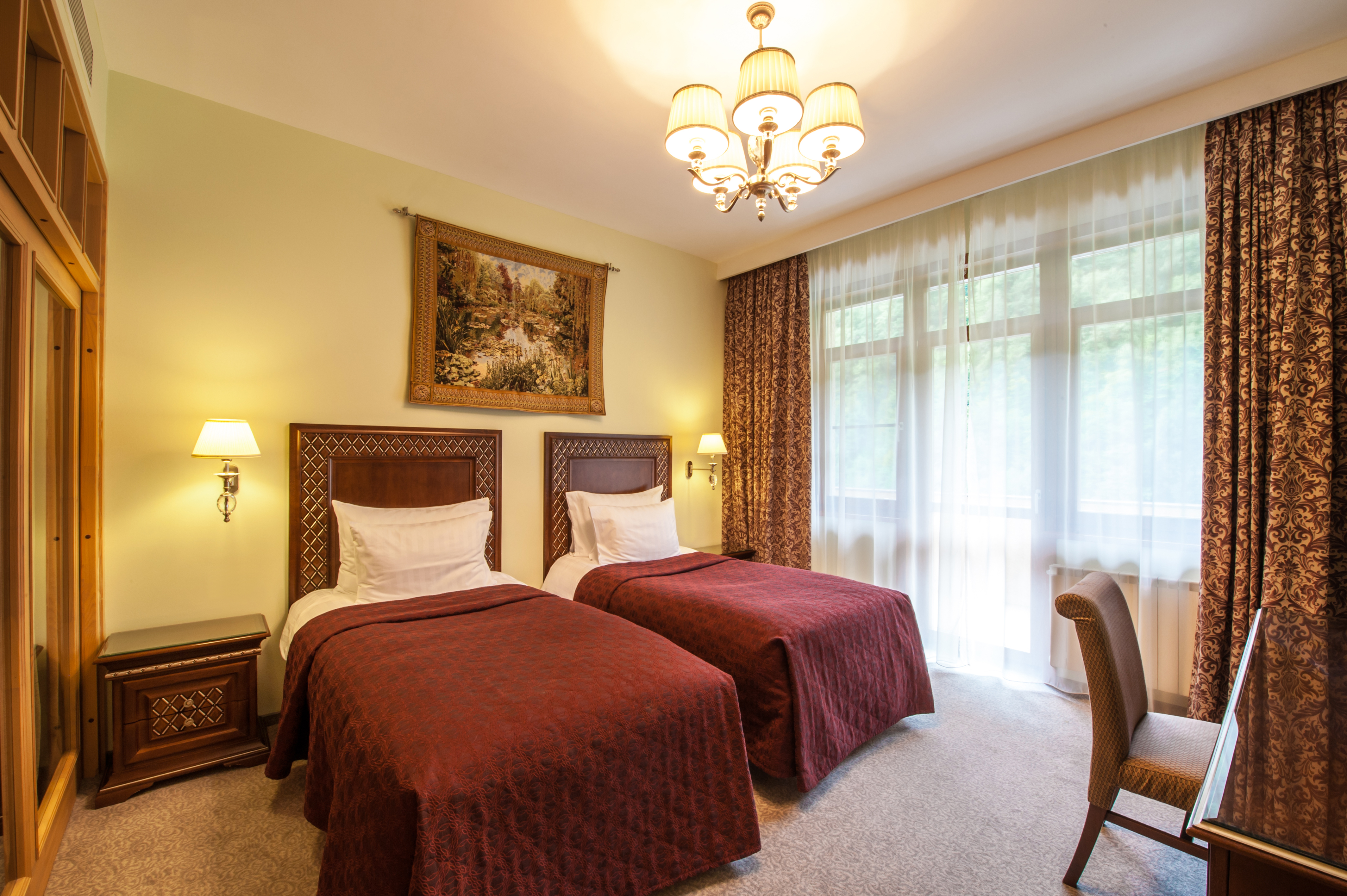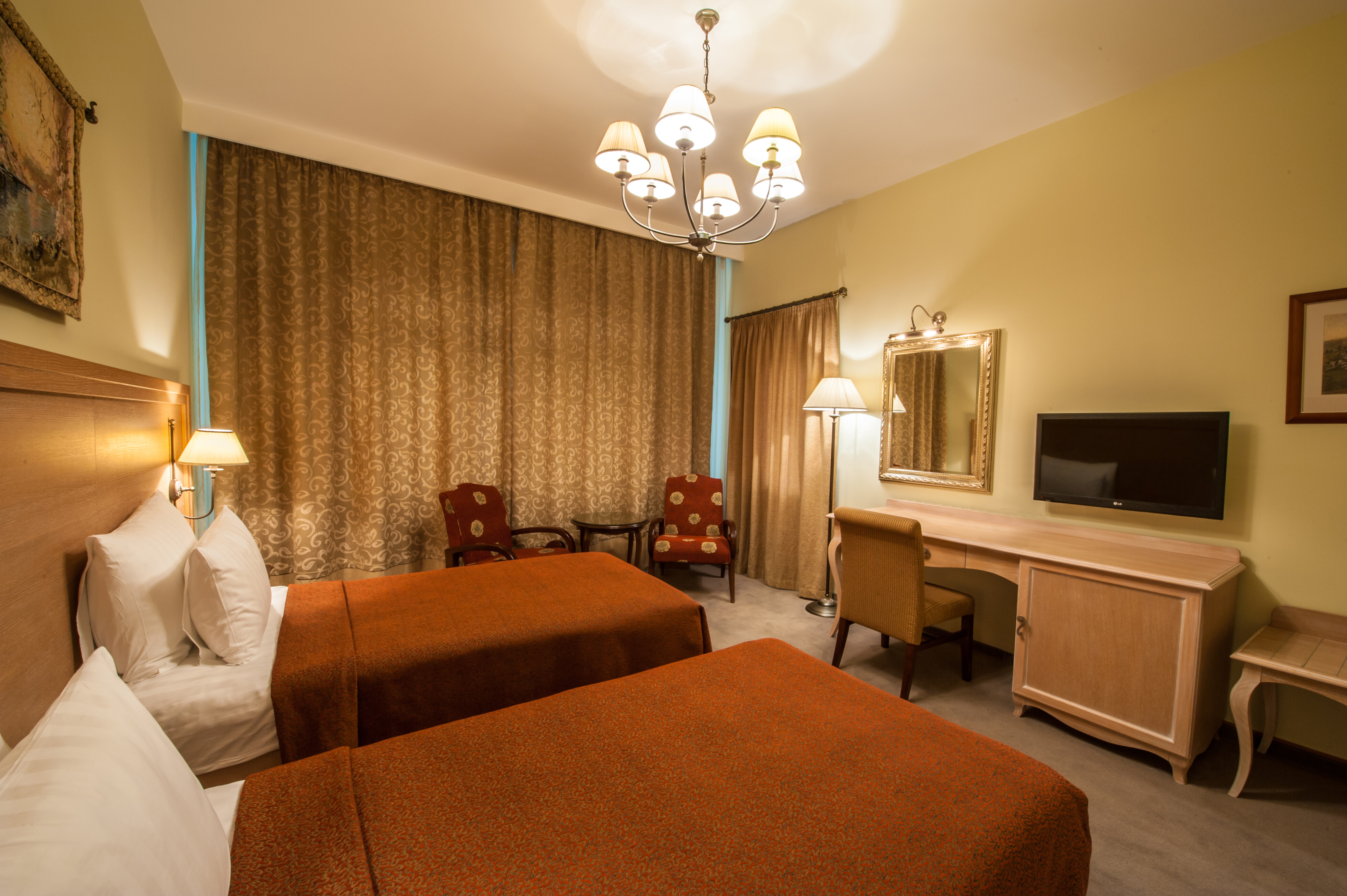 Комментарии: Площадь номера: 32-37 кв.м.<br /> <br /> Номер без балкона.<br /> <br /> Максимальное количество гостей: 3 взрослых (2 осн. + 1 доп. место).<br /> Дополнительное место - еврораскладушка.<br /> Ребенок до 4-х лет (вкл.) с представлением места (детская кроватка или еврораскладушка) и питания размещаются - бесплатно.<br /> Детская кроватка предоставляется бесплатно (по запросу).<br /> <br /> "Делюкс Twin" - номер без дополнительного спального места.<br /> "Делюкс Twin с доп. местом" - номер с дополнительным спальным местом.<br /> <br /> (Корпус не гарантирован. Интерьер может отличаться от представленных на фото)