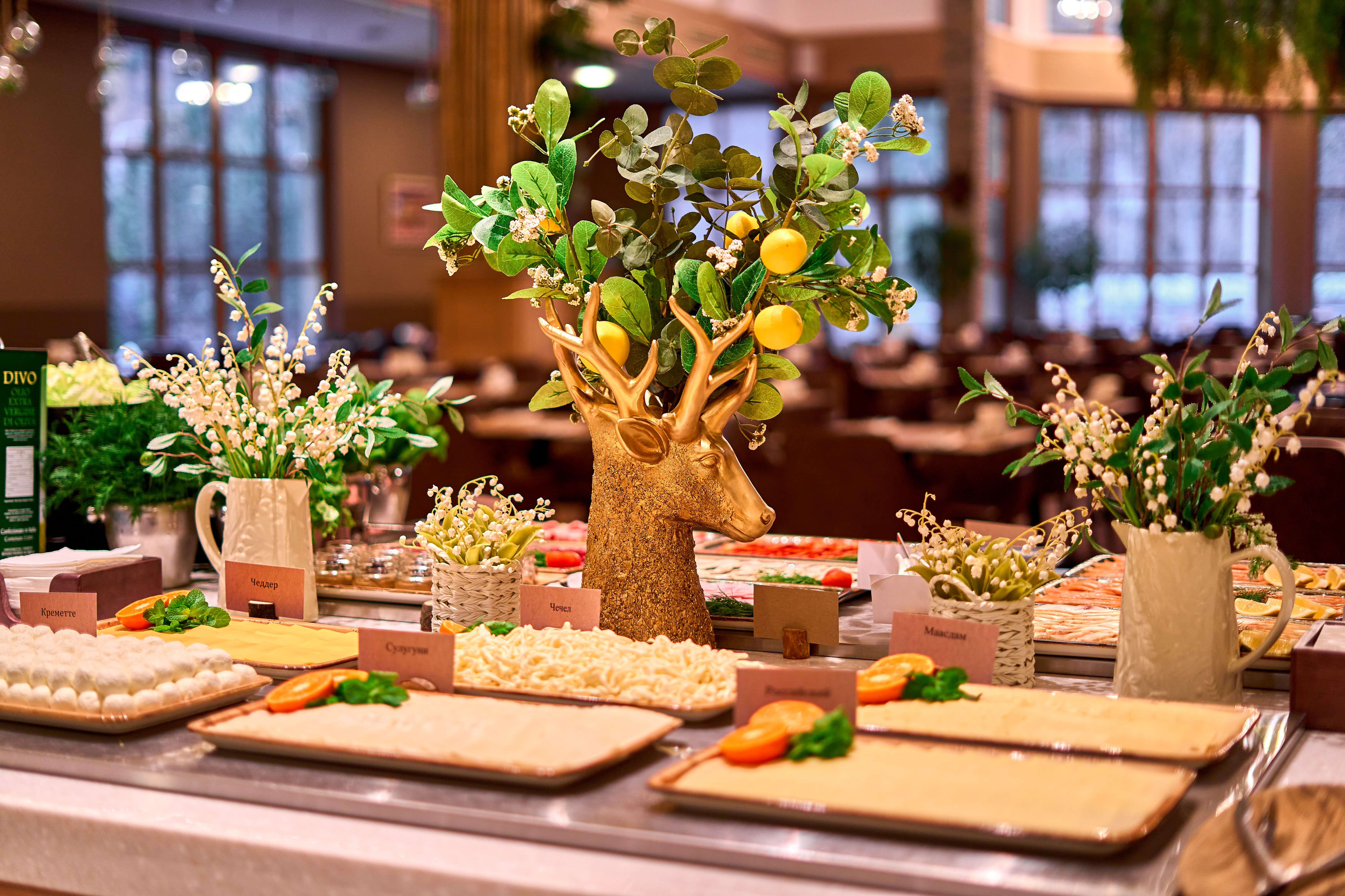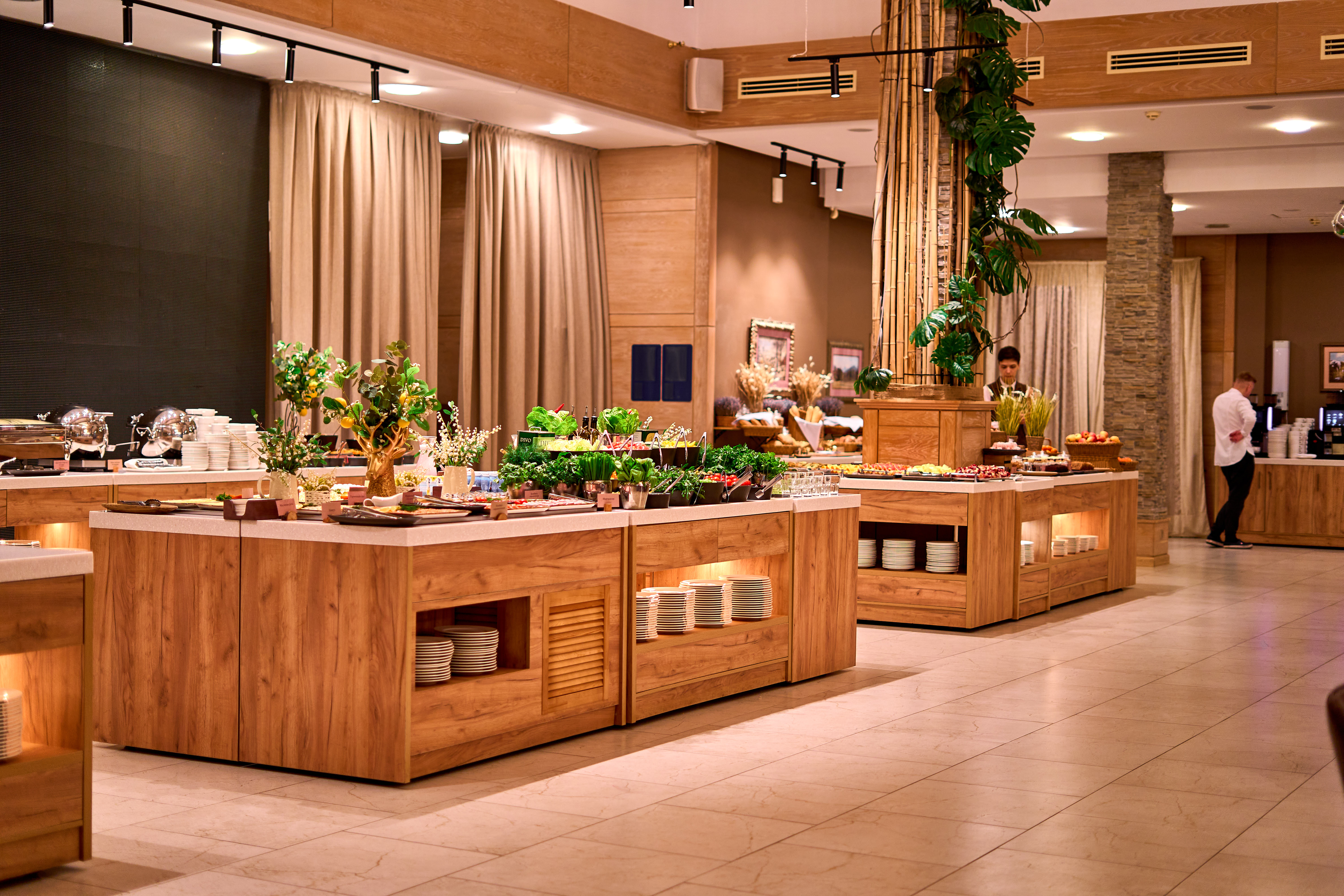 Рестораны a la carte/шведский стол: Континенталь ресторан (Корпус А) - Новая русская кухня. Открытая терраса в теплое время года. Живой звук. Обширная карта вин.<br /> Завтрак 07:30 – 10:30<br /> Меню a-la carte 13:00 – 23:30<br /> Технический перерыв 10:30 – 13:00<br /> <br /> Охотничий зал ресторан (Корпус В) - Традиционная русская кухня. В ресторане проводятся тематические ужины и концерты. Живой звук.<br /> Завтрак 07:30 – 10:30<br /> Меню a-la carte 13:00 – 23:30<br /> Технический перерыв 10:30 – 13:00<br /> <br /> Сезон ресторан (Корпус В) - Авторская кухня. Сезонные предложения. Элегантный интерьер.<br /> Время работы: 12:00 – 23:30<br /> <br /> Павильон Steak House (Корпус С) - Мясные блюда, домашняя атмосфера. Обширная карта вин. Кулинарные мастер-классы.<br /> Завтрак 07:30 – 10:30<br /> Меню a-la carte 13:00 – 23:30<br /> Технический перерыв 10:30 – 13:00