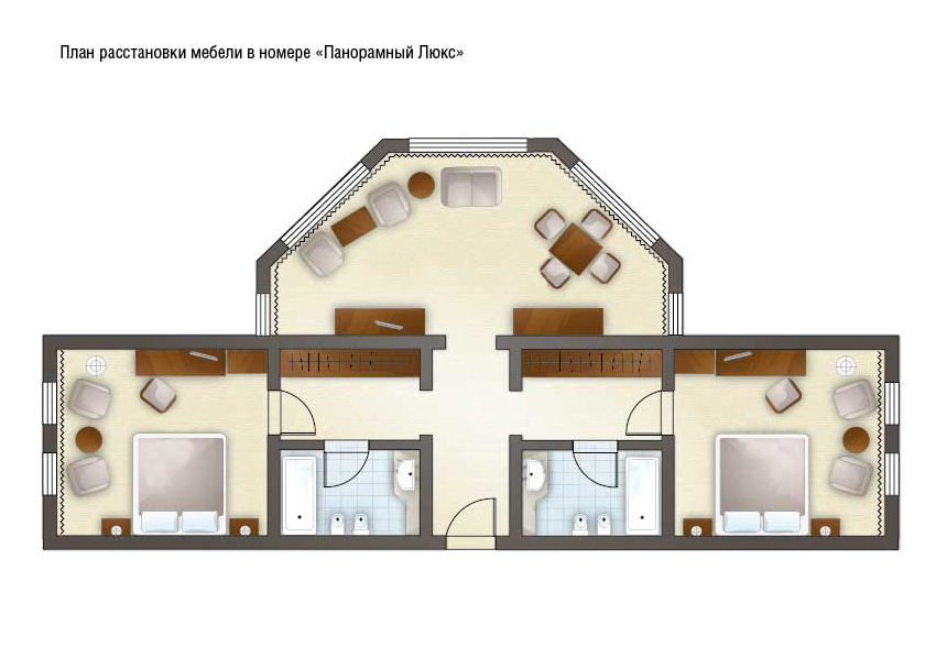 Комментарии: В номере: две ванные комнаты<br /> <br /> "Панорамный Люкс": номер без дополнительного спального места.<br /> "Панорманый Люкс с доп. местом": номер с дополнительным спальным местом.
