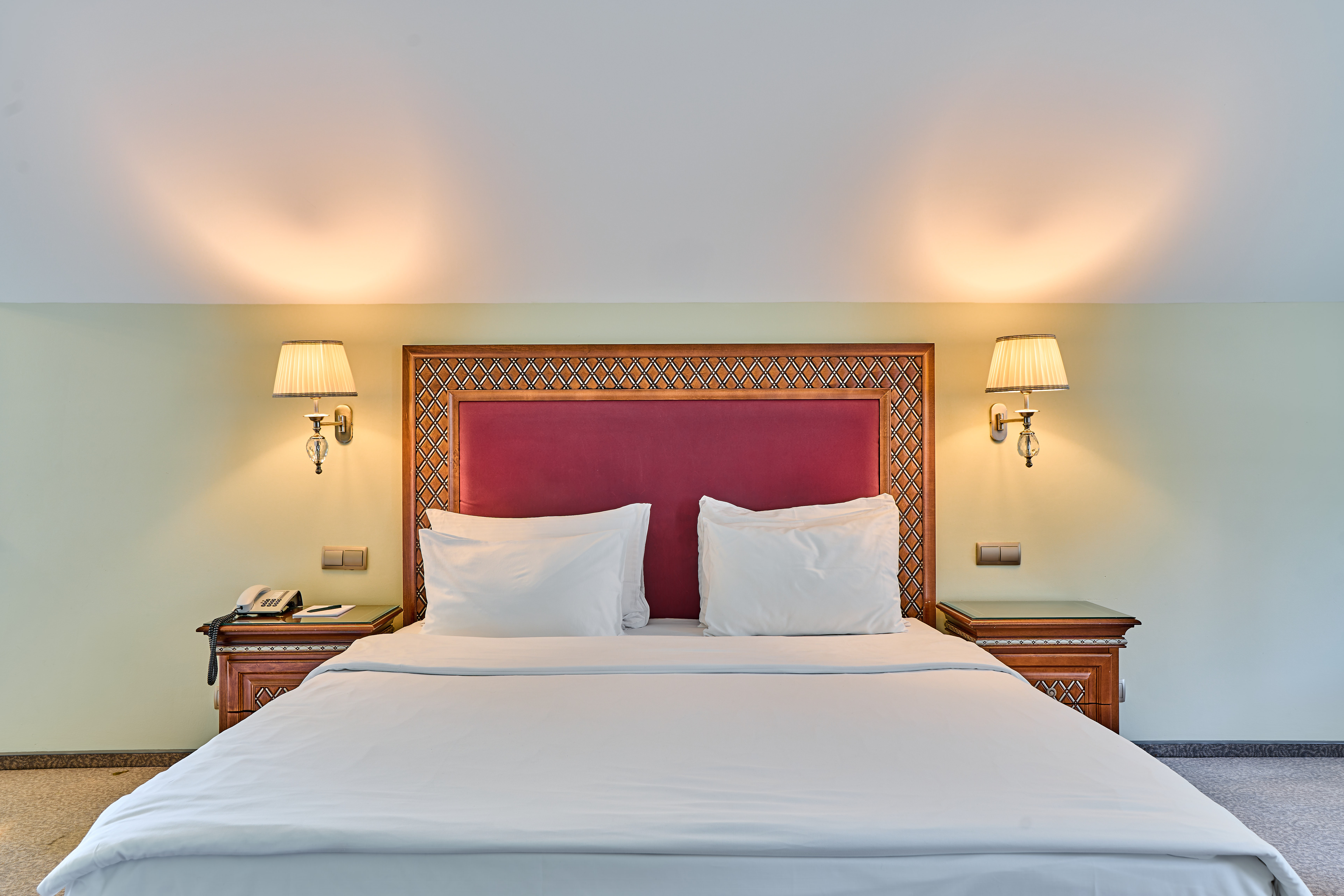 Комментарии: Площадь номера: 32-37 кв.м.<br /> <br /> Номер без балкона.<br /> <br /> Максимальное количество гостей: 3 взрослых (2 осн. + 1 доп. место).<br /> Дополнительное место - еврораскладушка.<br /> Ребенок до 4-х лет (вкл.) с представлением места (детская кроватка или еврораскладушка) и питания размещаются - бесплатно.<br /> Детская кроватка предоставляется бесплатно (по запросу).<br /> <br /> "Делюкс King" - номер без дополнительного спального места.<br /> "Делюкс King с доп. местом" - номер с дополнительным спальным местом.<br /> <br /> (Корпус не гарантирован. Интерьер может отличаться от представленных на фото)
