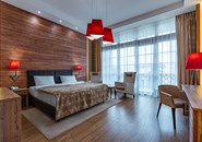 Комментарии: Площадь номера: 25-27 кв.м.<br /> <br /> Однокомнатный номер состоит из спальни и совмещенной туалетной комнаты с душевой кабиной и ванной. Оформление совпадает со стандартным номером. В номере имеются трюмо, дополнительные зеркало и мягкое кресло. Есть выход на общую террасу, панорамные окна.<br /> <br /> "Студия" - номер без дополнительного спального места.<br /> "Студия с доп. местом" - номер с дополнительным спальным местом.