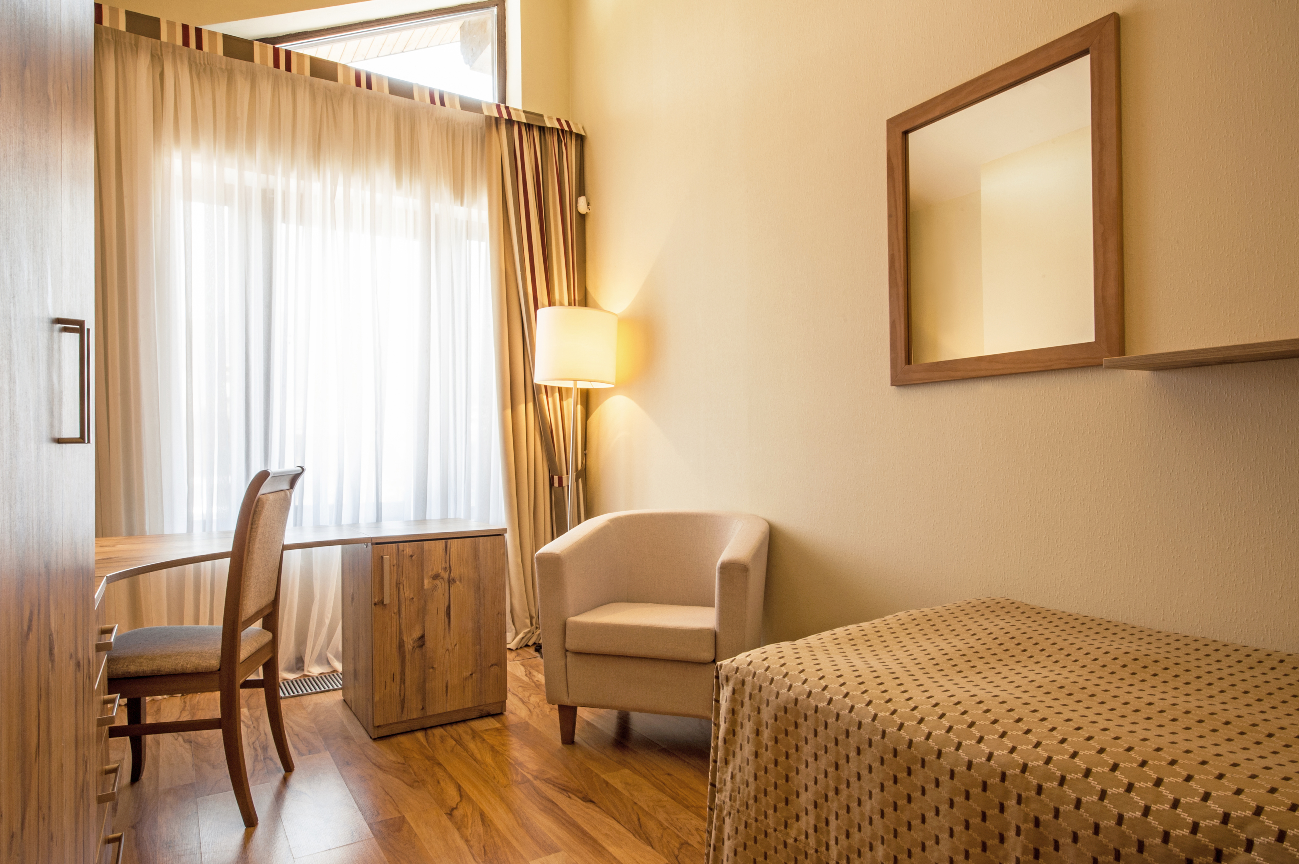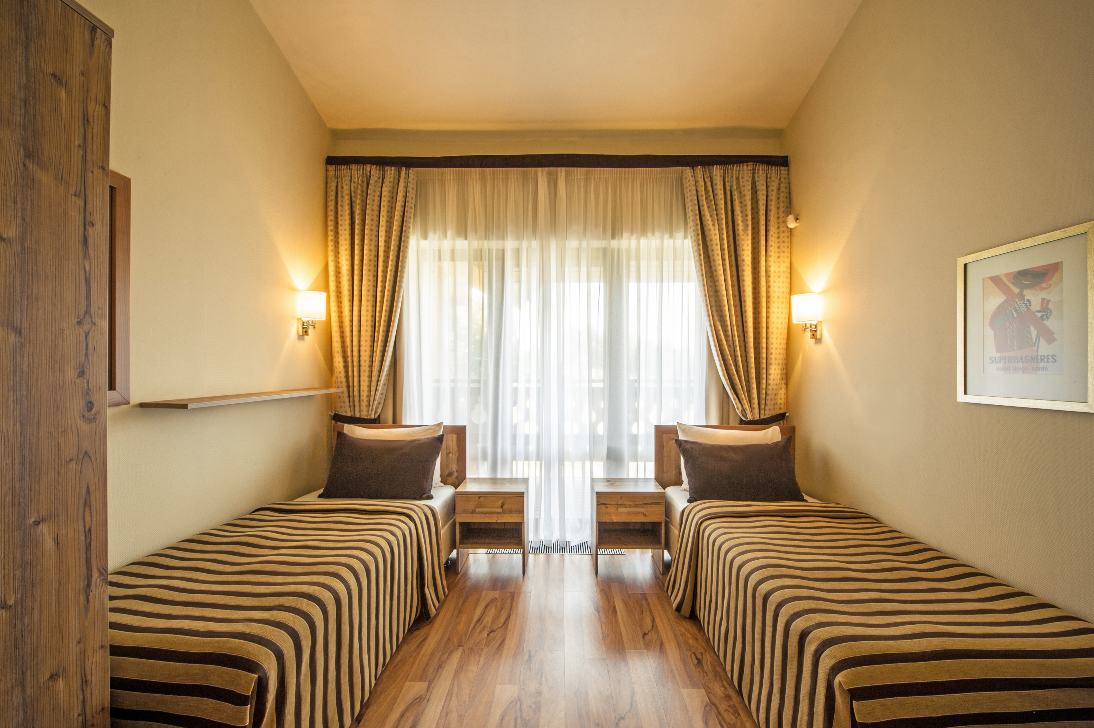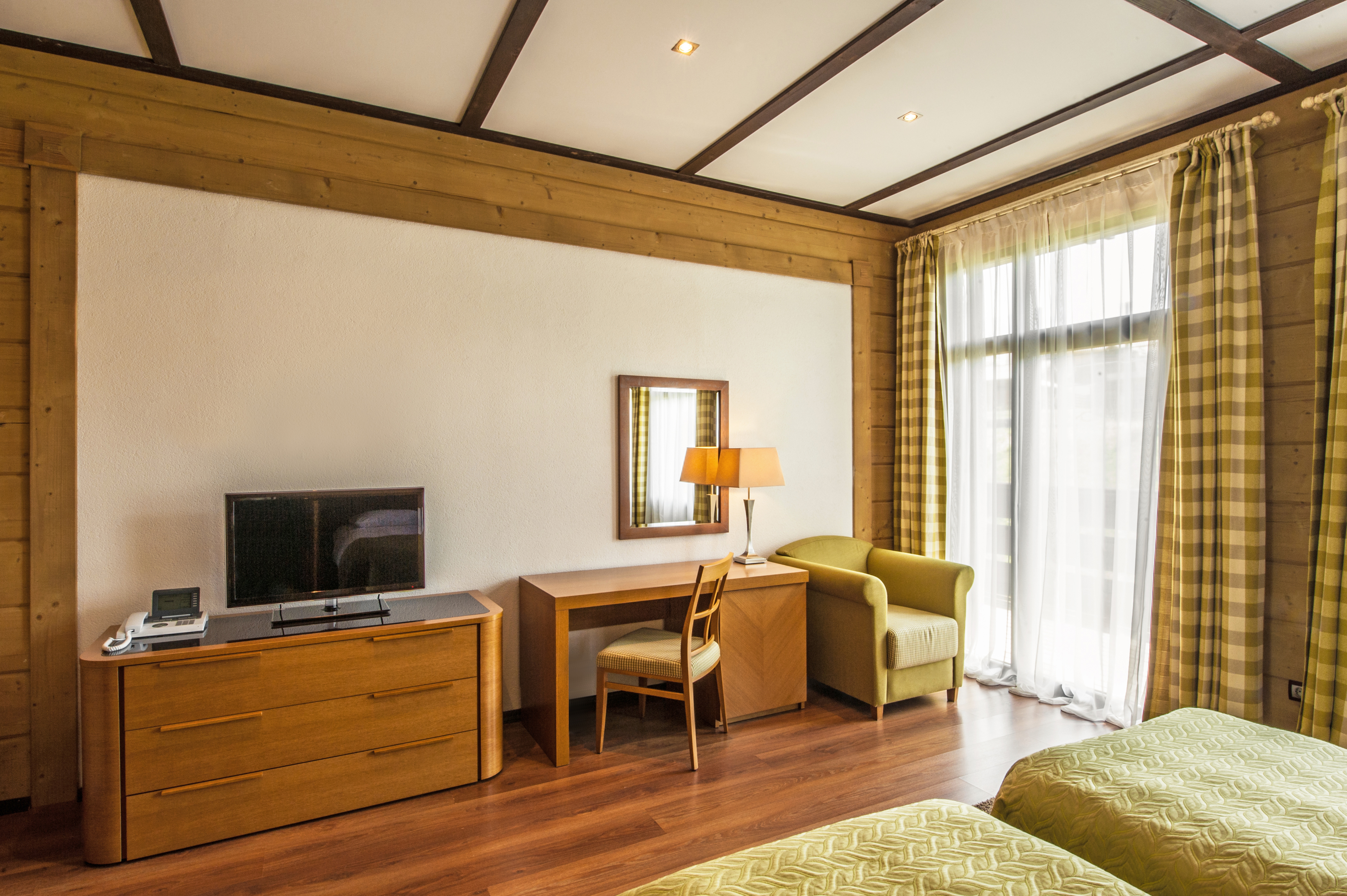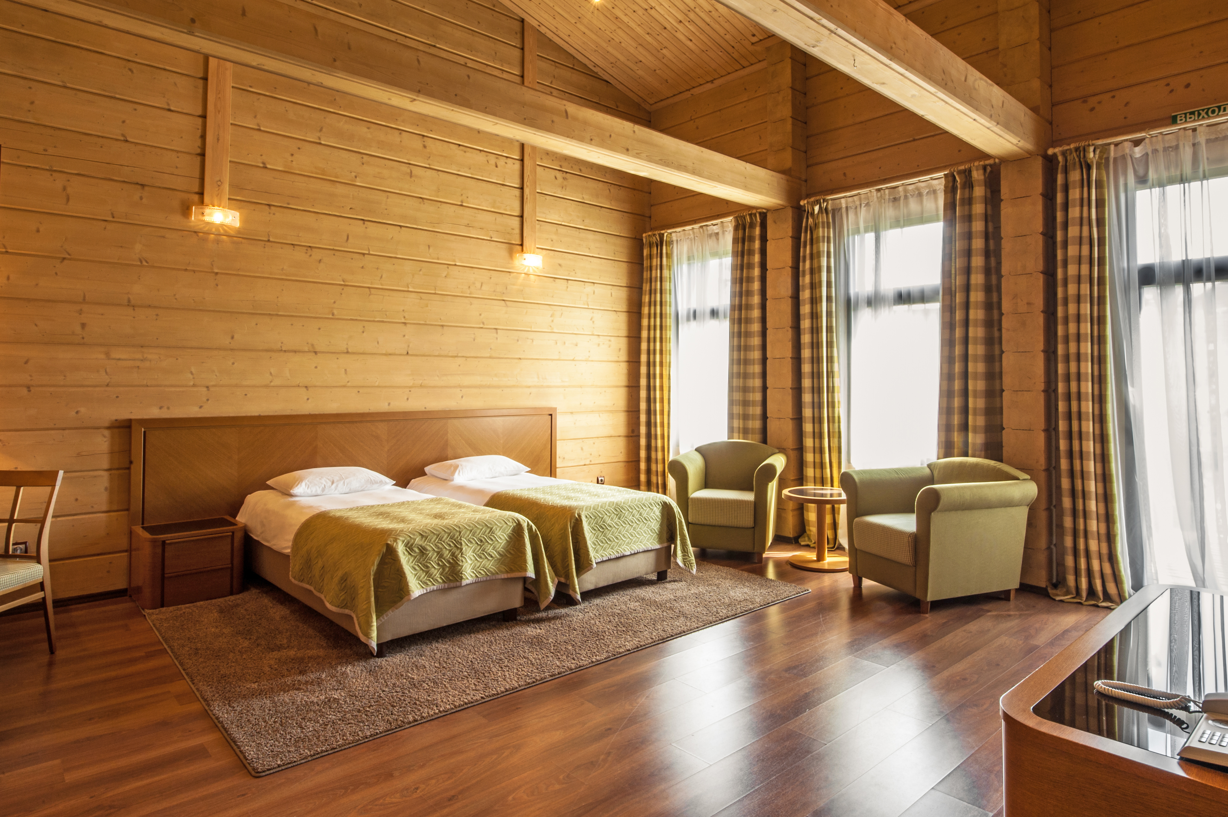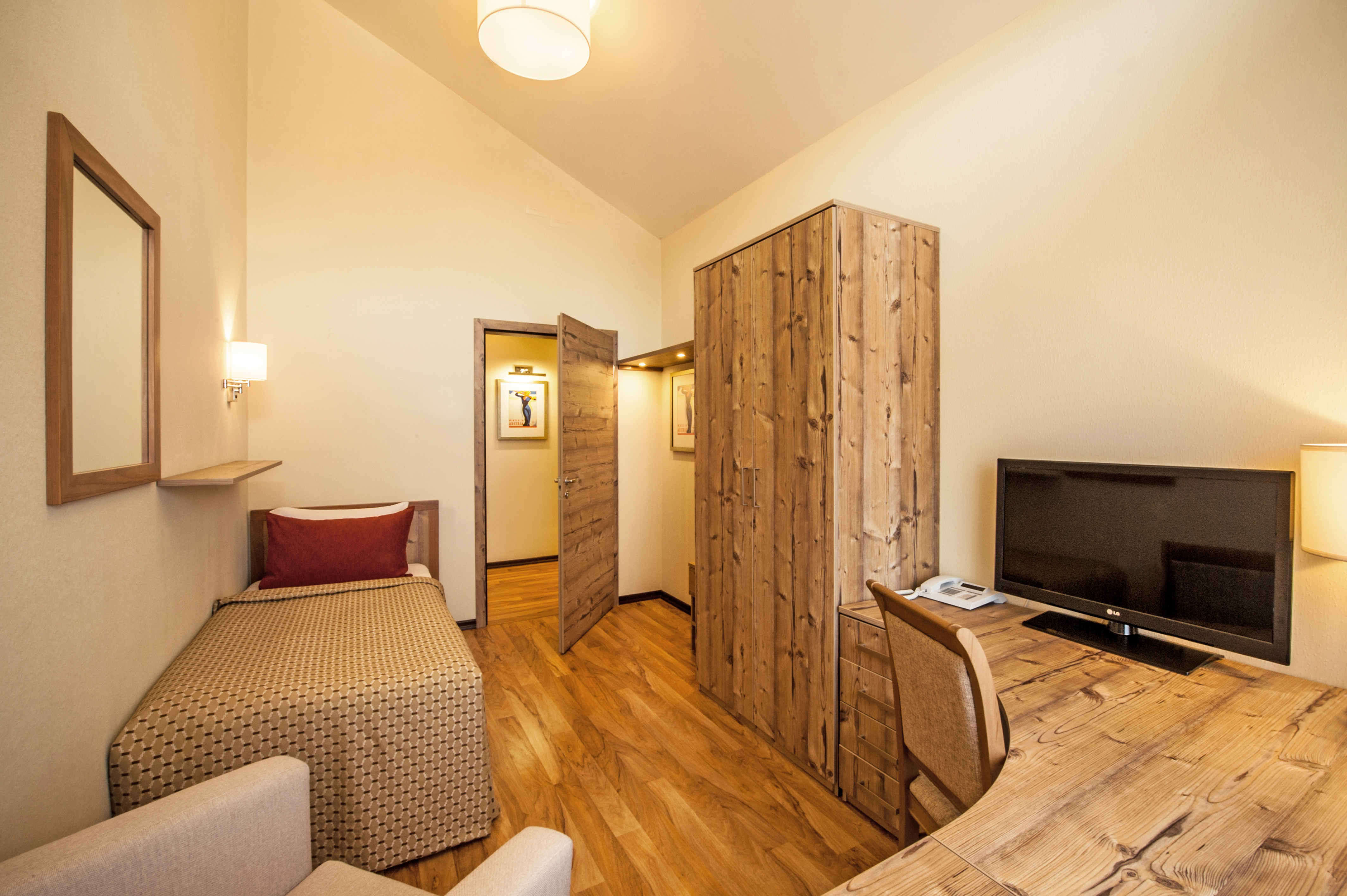 Комментарии: Площадь номера: 16-18 кв.м.<br /> <br /> Однокомнатный номер состоит из спальни и совмещенной туалетной комнаты с душевой кабиной.<br /> В номере расположены 2 полутороспальные кровати с матрасами-конструкторами, которые при необходимости объединяются в размер Queen size. Интерьер оформлен в традиционном альпийском стиле, в светлых тонах. <br /> В номере есть все необходимое: офисный стол со встроенным мини-баром, стул, 1 мягкое кресло, журнальный стол, 2 прикроватные тумбочки, зеркало, телефон, плазменный LCD-телевизор с возможностью выхода в интернет, классические настольная и напольная лампы.<br /> <br /> "Стандарт" - номер без дополнительного спального места.<br /> "Стандарт с доп. местом" - номер с дополнительным спальным местом.