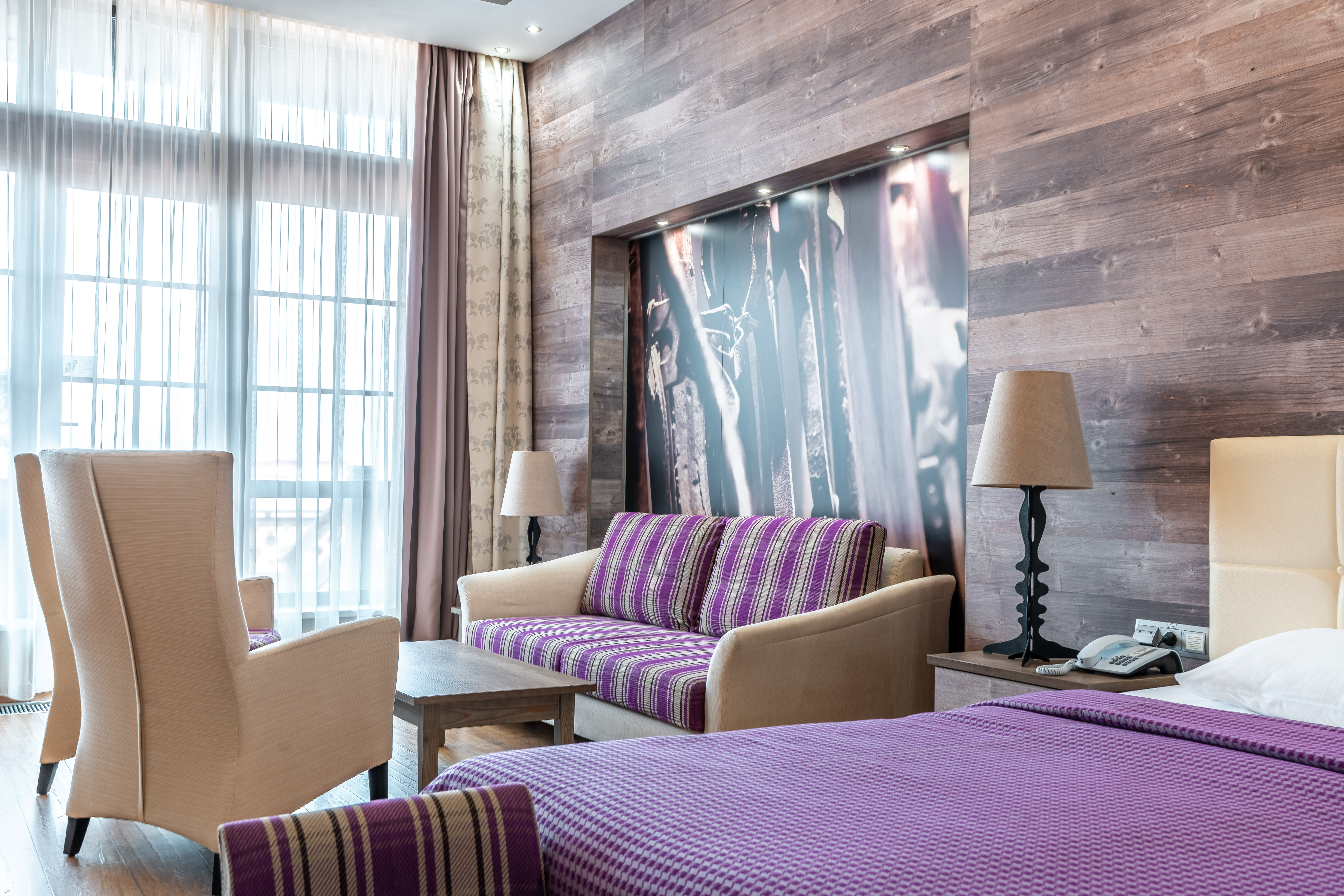 Архитектурная концепция отеля - экостиль. Для оформления интерьеров выбраны только натуральные материалы: дерево, лен, мрамор. Сочетание элегантной простоты с современным дизайном и высочайшим уровнем технического оснащения позволит гостям отеля чувствовать себя максимально уютно и гармонично.
