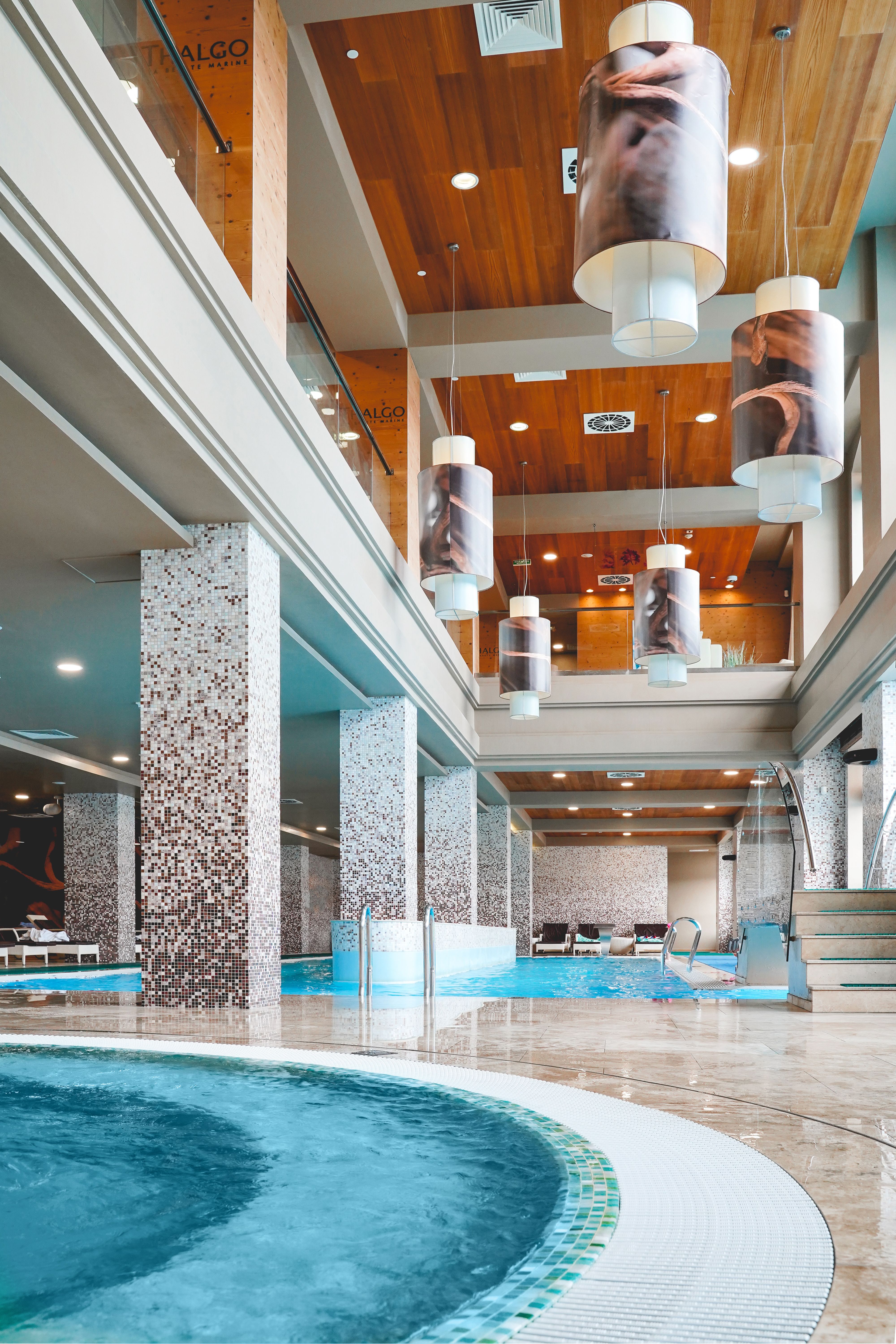 | Комментарии к бассейну и горкам | Крытый бассейн для взрослых соединен с открытым бассейном, выходящим на террасу, а также – детский бассейн с гидромассажем располагаются на первом этаже комплекса Chandelle Blanche Medi SPA & Beauty Lоunge. |