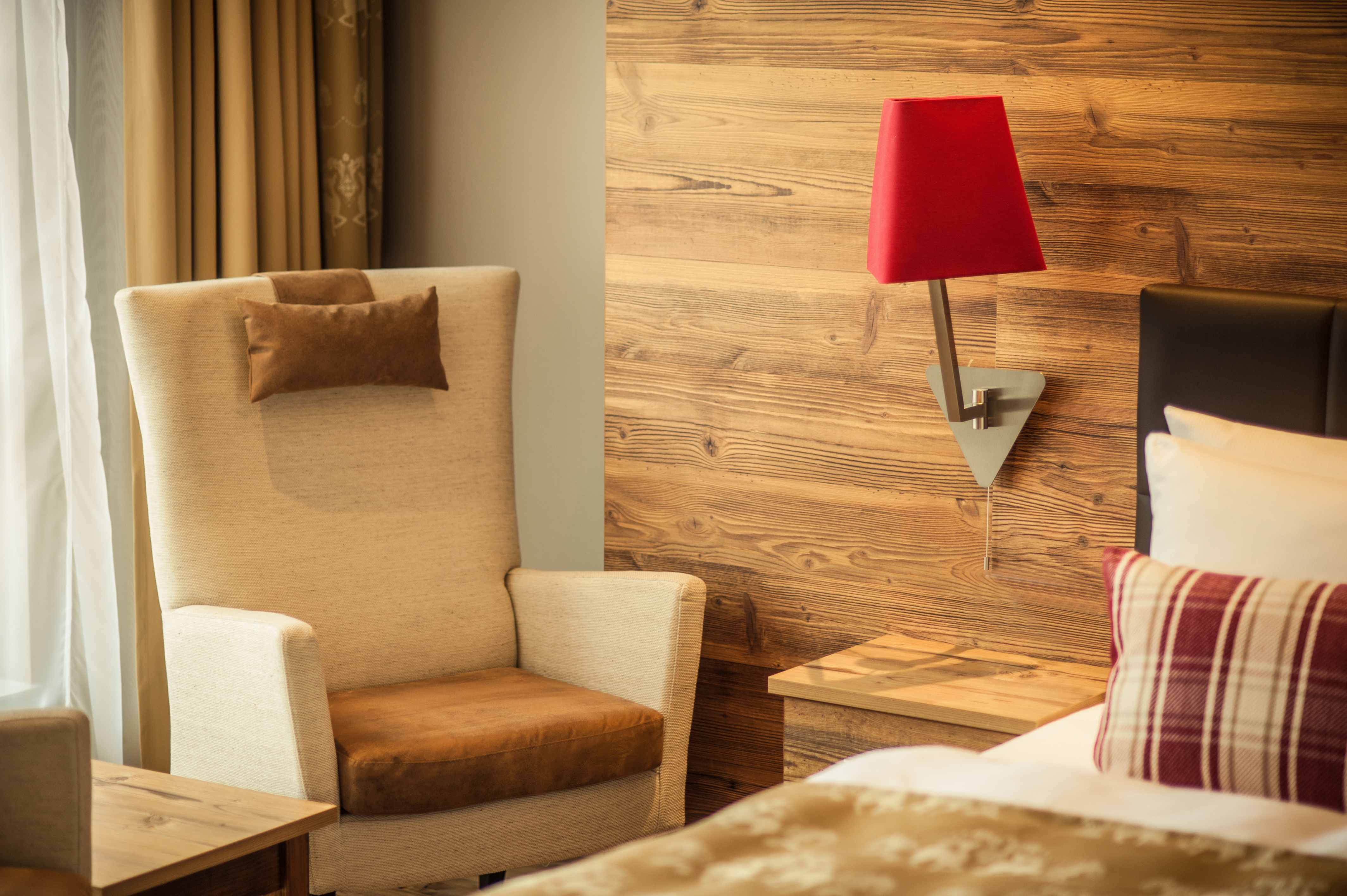 Покрытие пола: Ламинат Уборка в номере: ежедневно Смена белья: 1 раз в 3 дня Дополнительные услуги: Ортопедические матрасы, пледы, махровые салфетки, набор принадлежностей для ванных комнат, комплекты полотенец Площадь номера: 16-18 кв.м.<br /> <br /> Однокомнатный номер состоит из спальни и совмещенной туалетной комнаты с душевой кабиной.<br /> В номере расположены 2 полутороспальные кровати с матрасами-конструкторами, которые при необходимости объединяются в размер Queen size. Интерьер оформлен в традиционном альпийском стиле, в светлых тонах. <br /> В номере есть все необходимое: офисный стол со встроенным мини-баром, стул, 1 мягкое кресло, журнальный стол, 2 прикроватные тумбочки, зеркало, телефон, плазменный LCD-телевизор с возможностью выхода в интернет, классические настольная и напольная лампы.<br /> <br /> "Стандарт с Видом на Горы/ Балкон" - номер без дополнительного спального места.<br /> "Стандарт с Видом на Горы/ с Балконом с доп местом" - номер с дополнительным спальным местом.  |