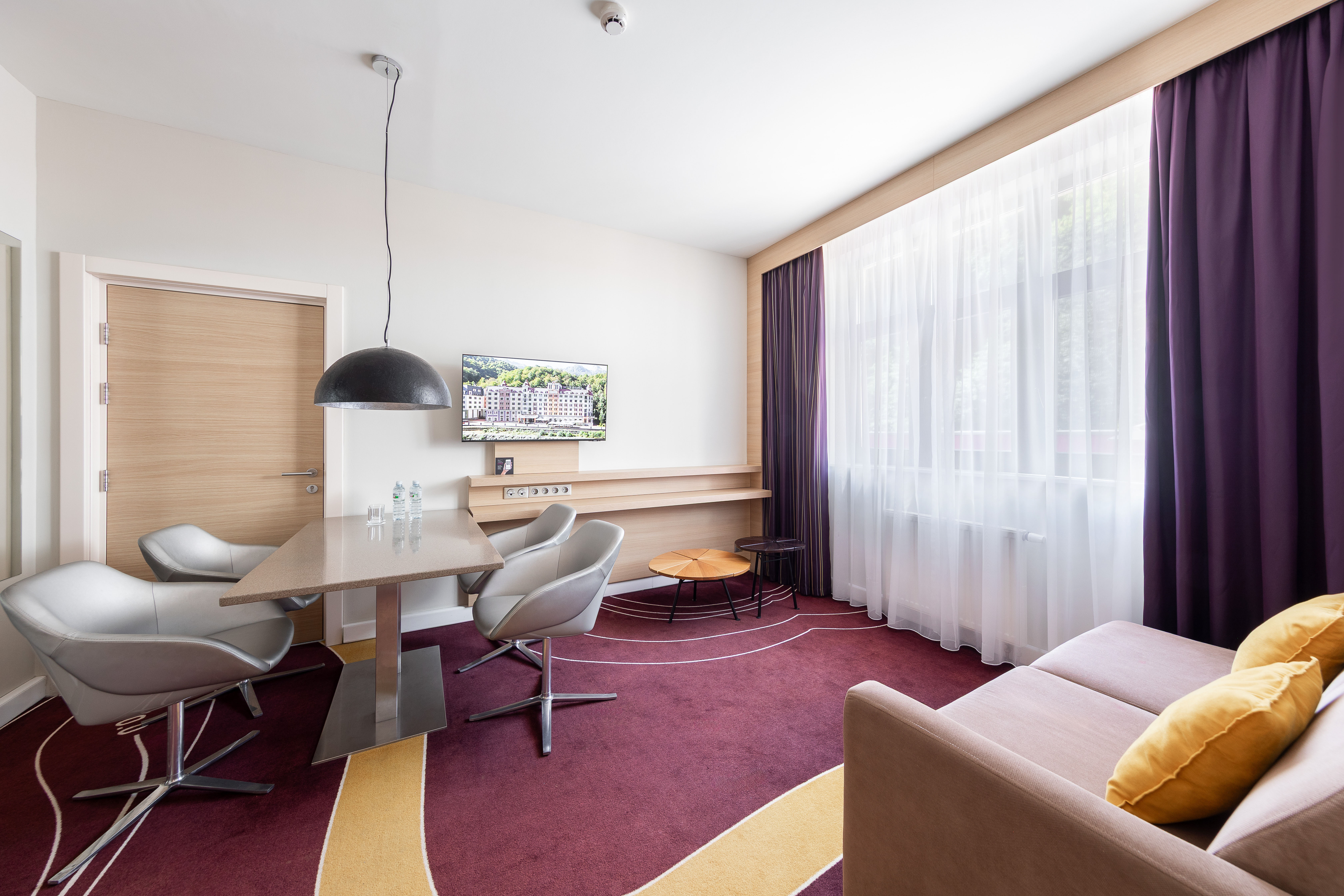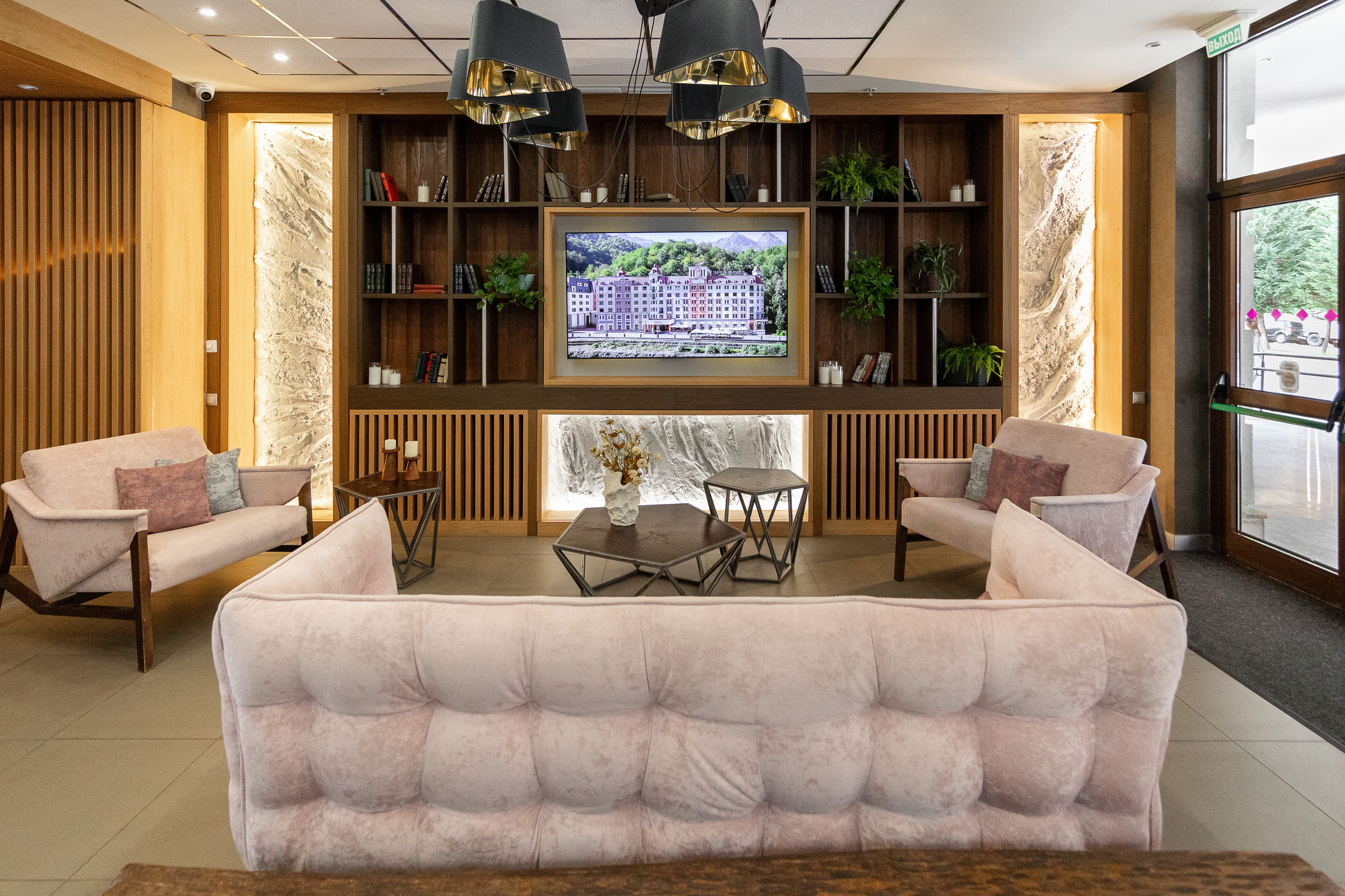Прекрасный четырехзвездочный отель, уютный, стильный, комфортабельный. Отель расположился у подножия Кавказских гор, в самом сердце курорта «Роза Хутор» и в непосредственной близости от горнолыжных подъёмников.