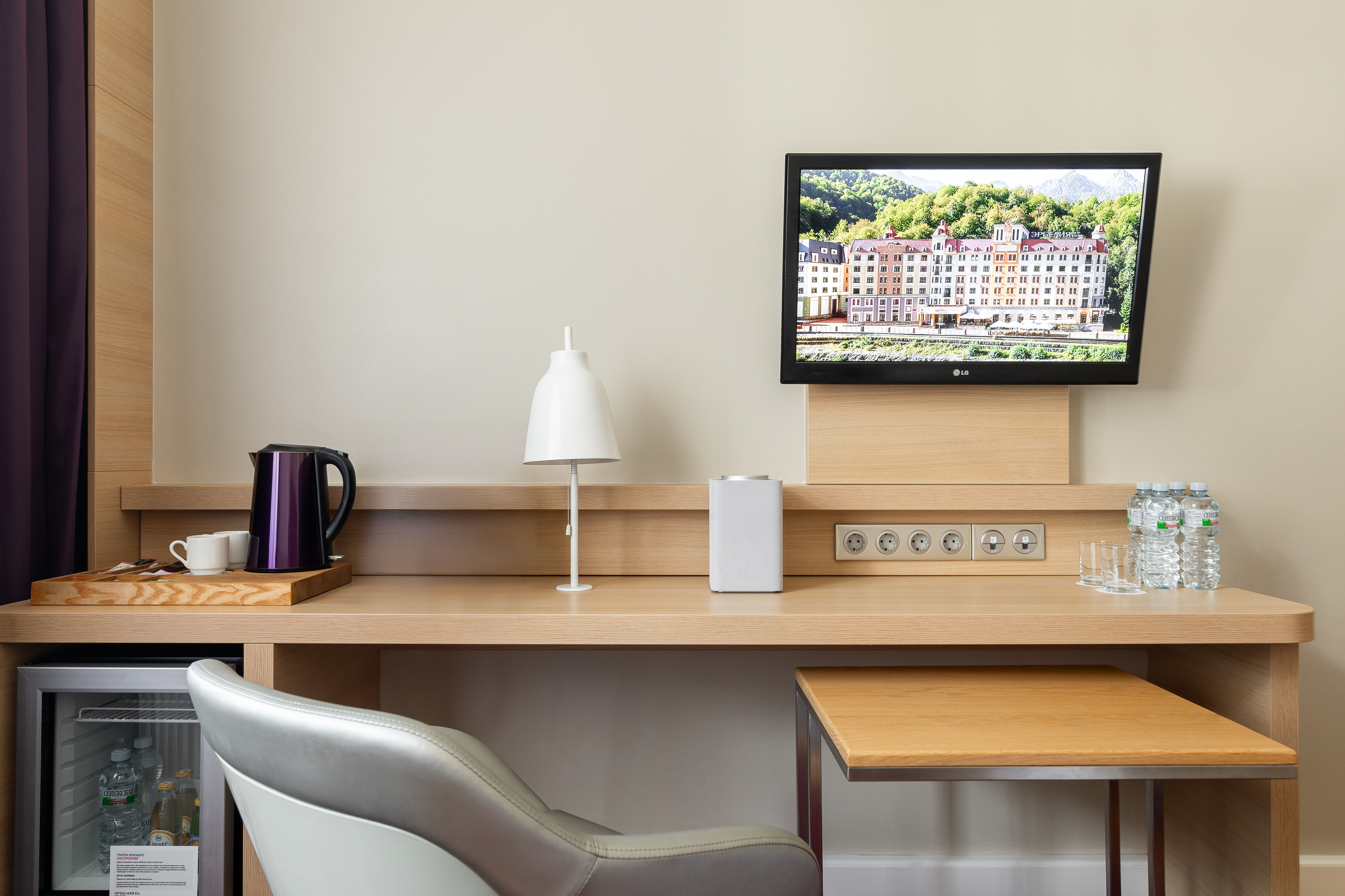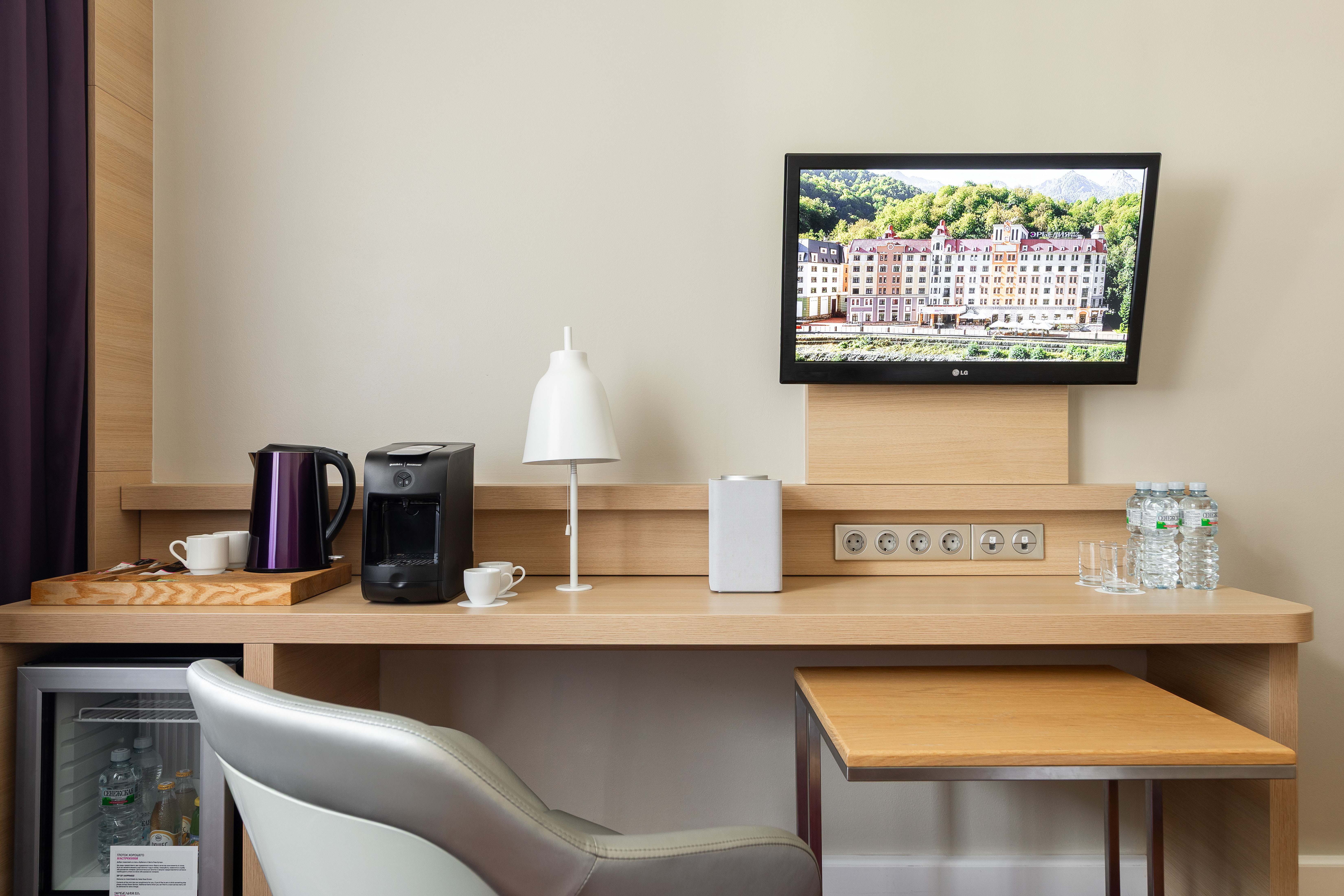 Расположение номера: в основном здании Вид из номера: на реку Покрытие пола: Ковролин Уборка в номере: ежедневно Смена белья: 1 раз в 3 дня Это номера с видом на горную реку Мзымта, комфортабельные, наполненные уютом. <br /> Номера оснащены одной двуспальной кроватью (160*200 см), раскладывающейся софой (140*200 см) или двумя односпальными кроватями (90*200 см), рабочей зоной, ванной или душевой кабиной. <br /> Оснащение: мини-бар с безалкогольными напитками и снеками, включенными в стоимость номера, набор для приготовления кофе и чая, капсульная кофемашина, система климат-контроля, светонепроницаемые шторы, гладильная станция с утюгом, телевизор, сейф, набор полотенец, халат, тропический душ, ванные принадлежности, тапочки, фен, расширенный ассортимент фирменной косметики, Wi-Fi, телефон.  |