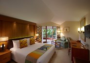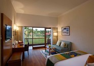 60 номеров. Площадь 28 кв.м. Вид на сад\на бассейн. Балкон. В номере одна двуспальная кровать или две односпальные кровати, электронный сейф (бесплатно), ТВ, центральный кондиционер, телефон (платно), чайные принадлежности. Wi-Fi (платно). Мини-бар (платно). Дополнительная кровать. В ванной комнате ванна, банные принадлежности, халат и тапочки, фен. Номера в основных корпусах. Room Service (платно). |