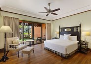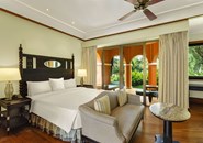 Расположение номера: на первом и втором этажах Вид из номера: на сад 120 номеров. Площадь номера 41 кв.м. В номере ТВ (есть 1 российский канал), телефон (платно), Wi-Fi (бесплатно), чайные принадлежности, сейф (бесплатно), мини-бар (платно), центральный кондиционер, CD/DVD проигрыватель. Покрытие пола - дерево. В ванной комнате ванна и ливневый душ, банные принадлежности, халат и тапочки, фен. Максимальное размещение 3 человека. Дополнительное спальное место - раскладушка / матрас (платно). Room Service (платно). Уборка номера - ежедневно. Смена белья - 3 раза в неделю.<br /> <br /> Номера на первом этаже с террасой, номера на втором этаже с балконом. |