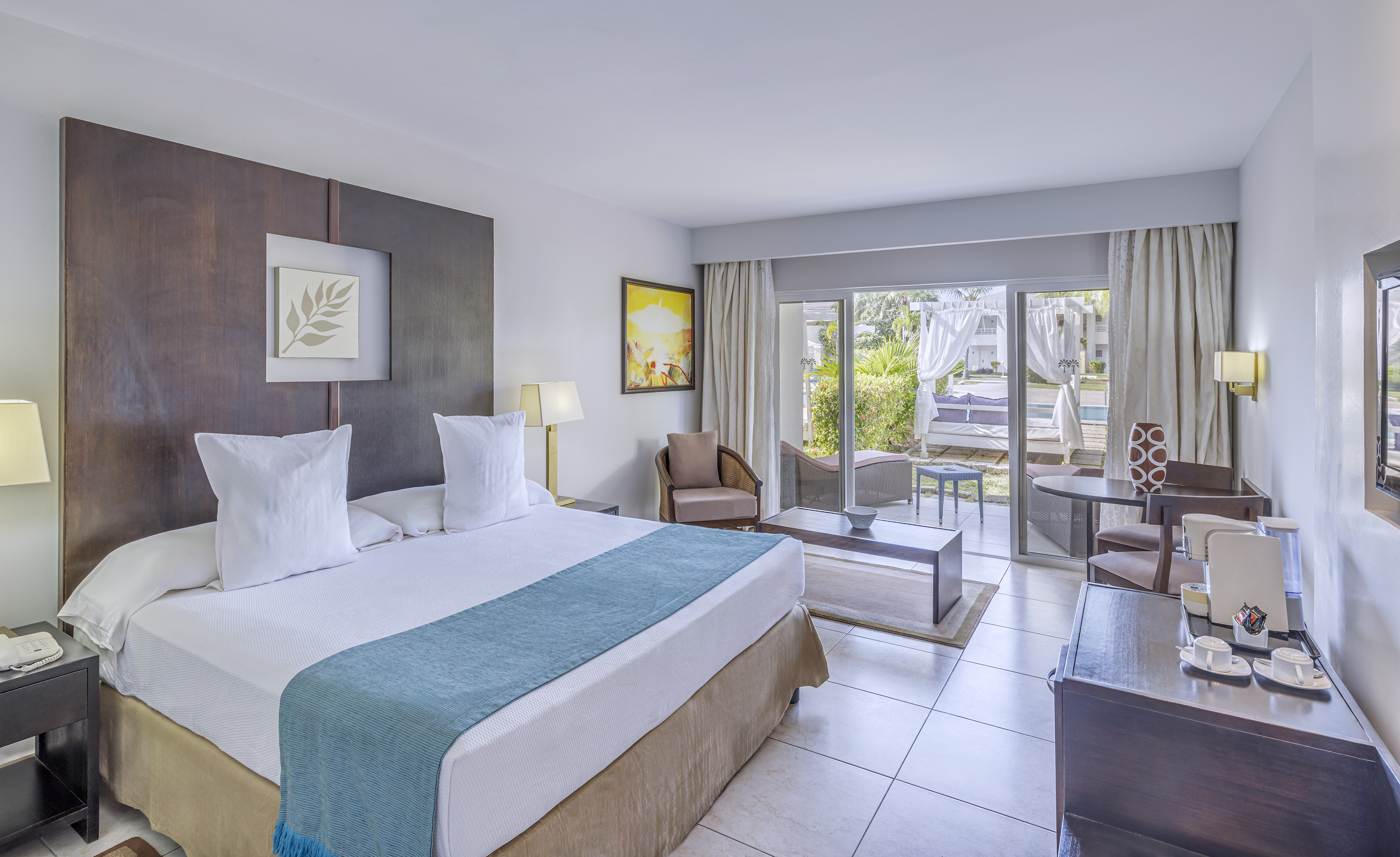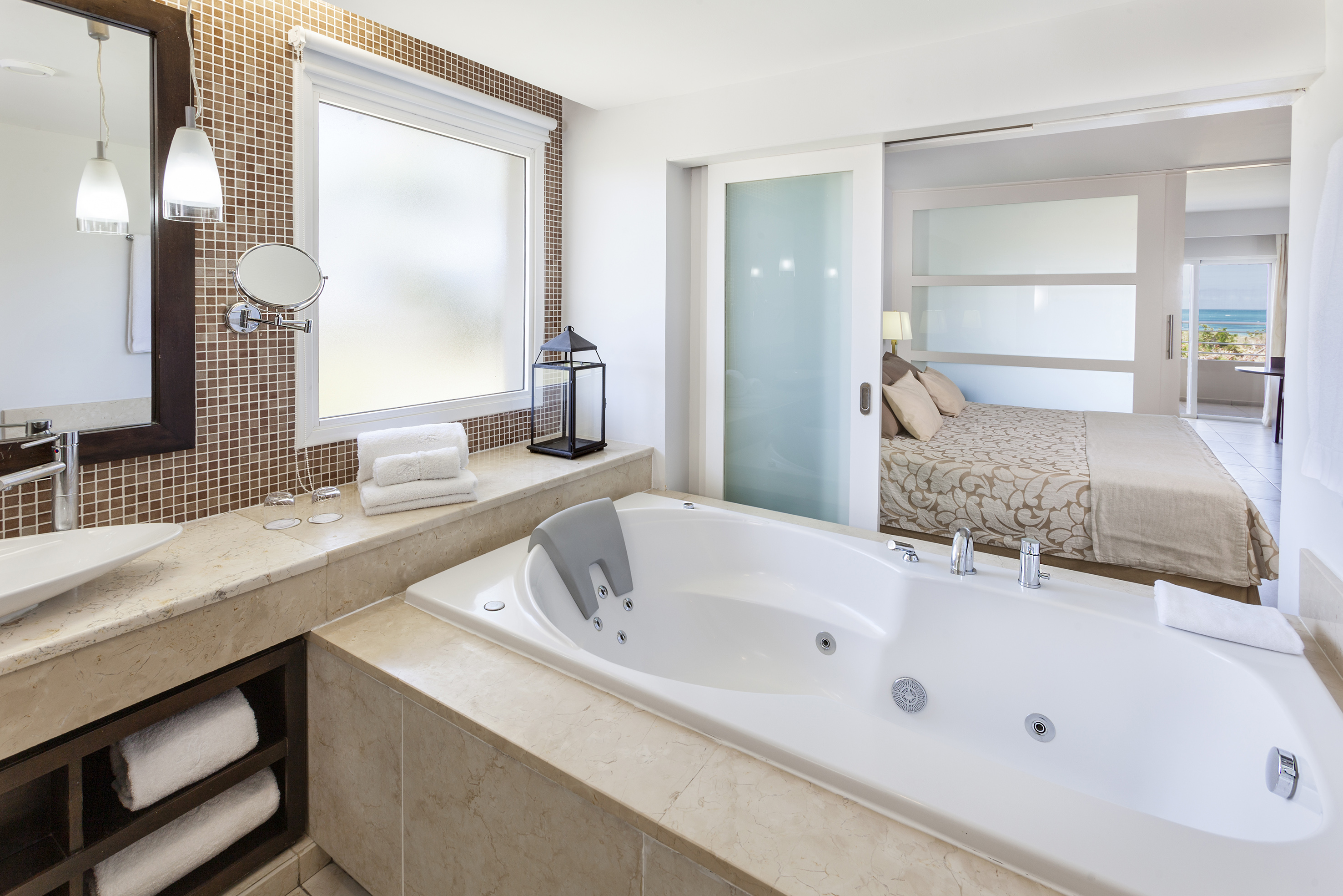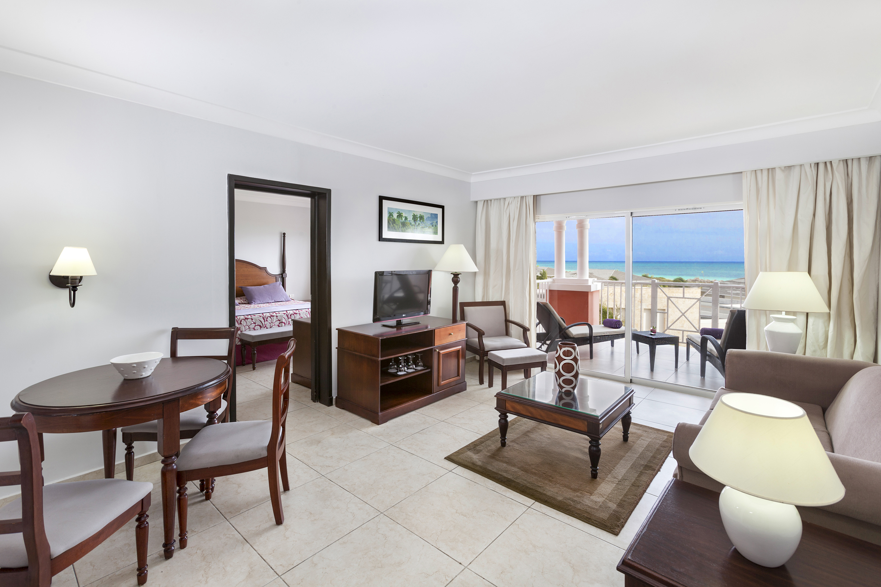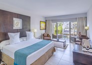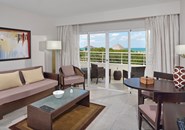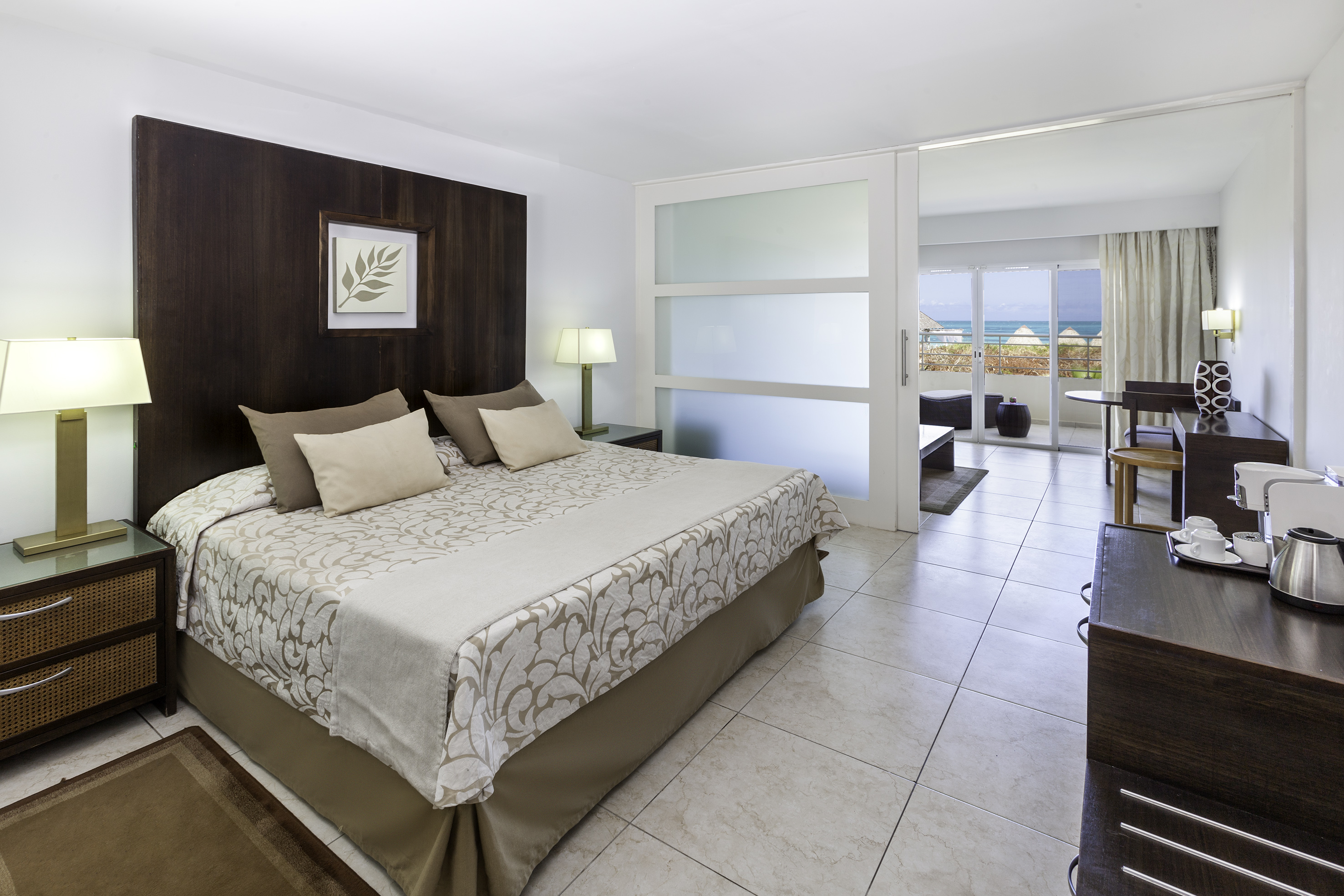 Вид из номера: на океан Наполнение мини-бара: Безалкогольные напитки, пиво, чай, кофе, сок, тоник и бар класса Премиум Уборка в номере: ежедневно Смена белья: 2 раза в неделю Спальня с зоной гостиной. 1 кровать king size или 2 односпальные кровати. Кондиционер. Зеркало. Зонт. <br /> Дополнительный услуги: Халат и тапочки. Соль для ванны. Полотенце для бассейна / пляжа. Выбор подушек. VIP мини-бар. |