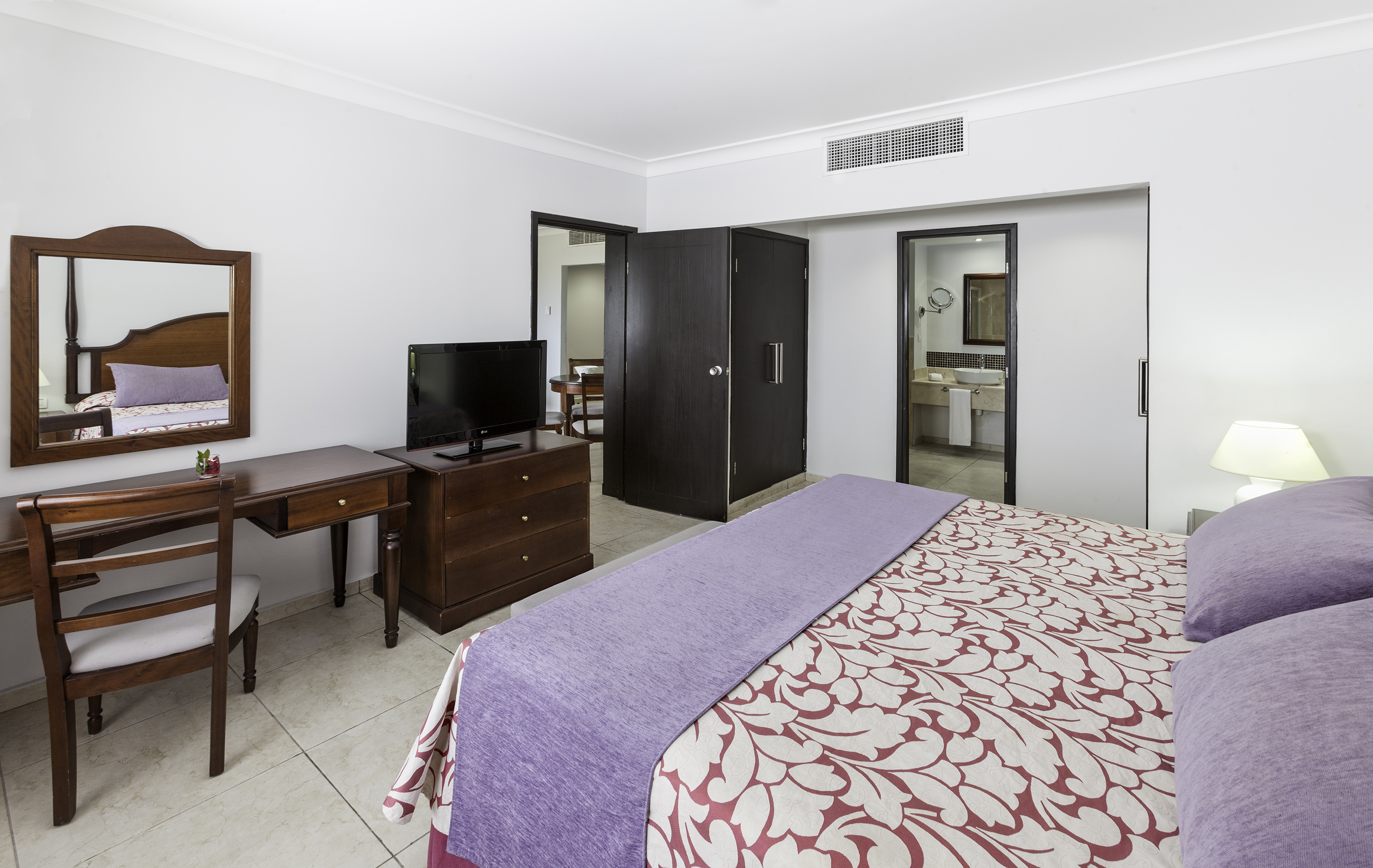 Комментарии: Спальня с зоной гостиной. 1 кровать king size или 2 односпальные кровати. Кондиционер. Зеркало. Зонт. <br /> Дополнительные услуги: Халат и тапочки. Соль для ванны. Полотенце для бассейна / пляжа. Выбор подушек.
