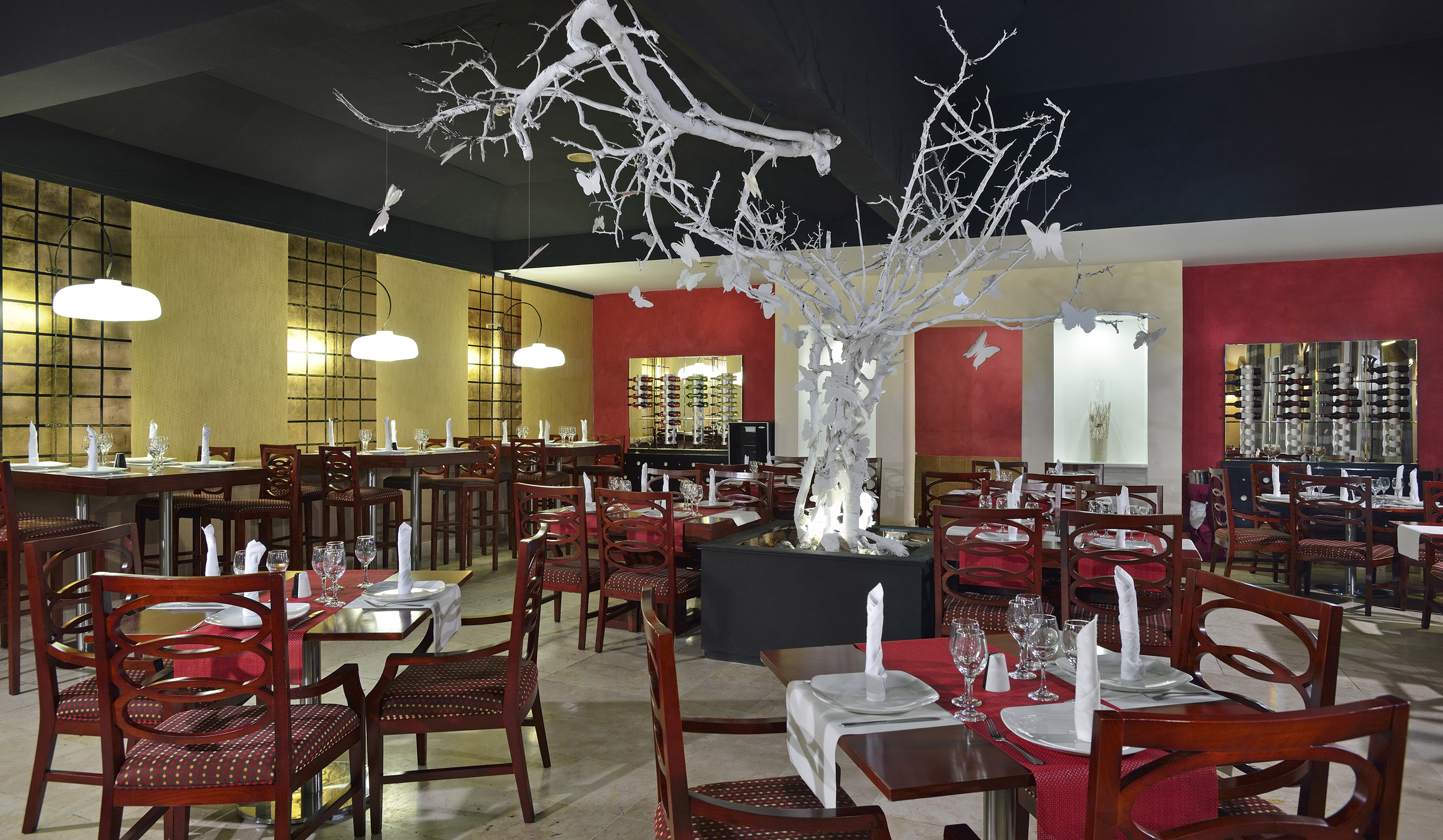Рестораны a la carte/шведский стол: Turey международная кухня а ля карт, 18:30-22:00.<br /> Vento: средиземноморская кухня, а ля карт, 18:30-22:00.<br /> Gourmet кухня фьюжин (платно): а ля карт, 18:30-22:00.<br /> Los Agaves: техасско-мексиканский ресторан а ля карт, 18:30-22:00.<br /> Sakura: японский ресторан а ля карт, 18:30-22:00.<br /> Bohio: гриль-шведский стол с 12:30-16:00, а ля карт, 19:00-22:00..<br /> Bella Mar: а ля карт ресторан, 07:30-10:30, 13:00-15:00, 18:30-22:00. Для гостей Royal Service.<br /> Gaby: 07:30-10:30, 13:00-15:00, 18:30-22:00. Для гостей The Reserve.<br /> Olio итальянская кухня: а ля карт, 18:30-22:00. Для гостей The Reserve.<br /> Bana азиатская и японская кухня: а ля карт, 18:30-22:00. Exclusive.<br /> Fuego латино-американская кухня: а ля карт, 18:30-22:00. Exclusive.<br /> Buffet Kids Club: шведский стол для детей, 11:00-17:00.<br /> В ресторанах действует дресс-код, необходима предварительная резервация.<br /> Отель гарантирует три бесплатных посещения в неделю.